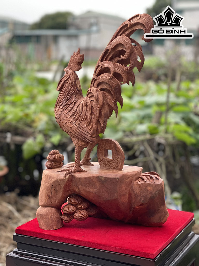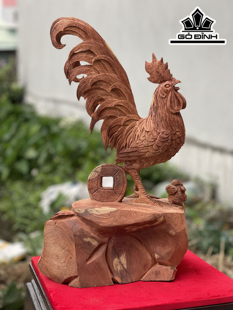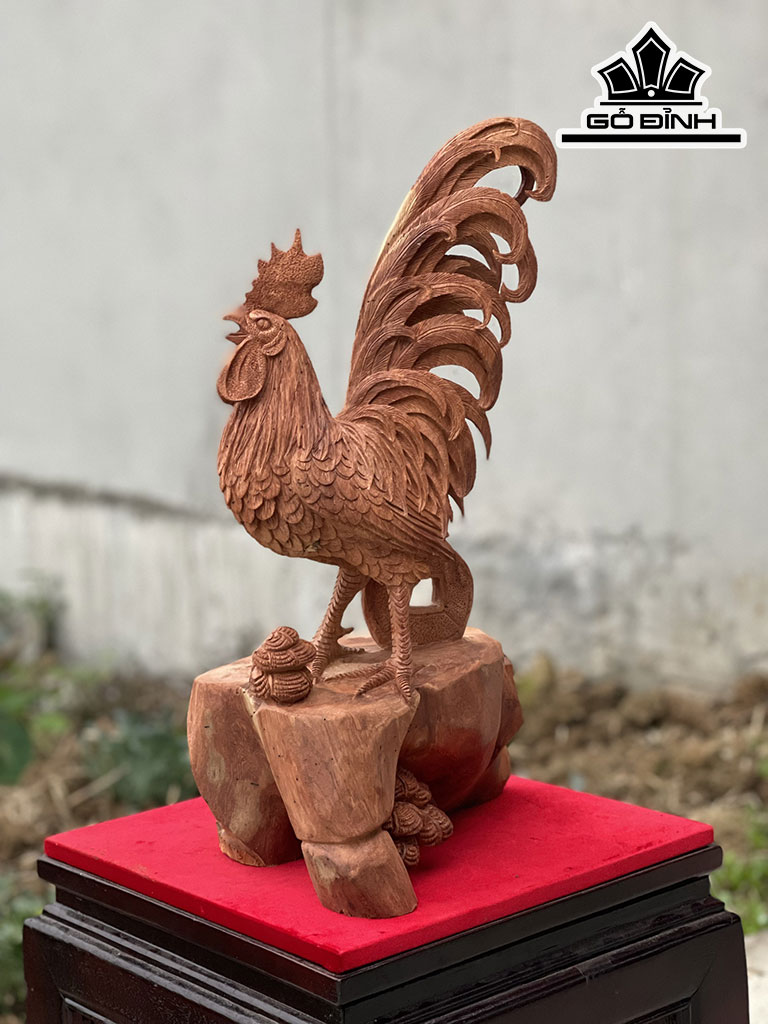 Tượng Nhất Kê Gỗ Hương Cao 56 Ngang 33 Sâu 20 (cm)