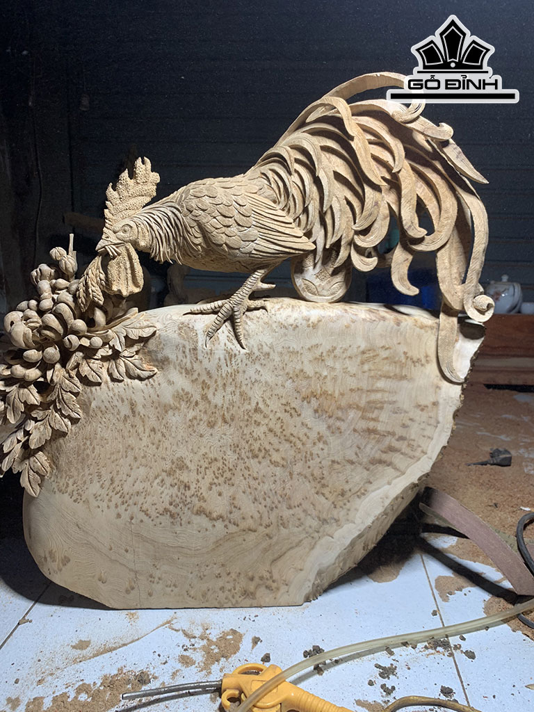 Tượng Nhất Kê Gỗ Nu Ngọc Am Cao 64 Ngang 58 Sâu 11 (cm)