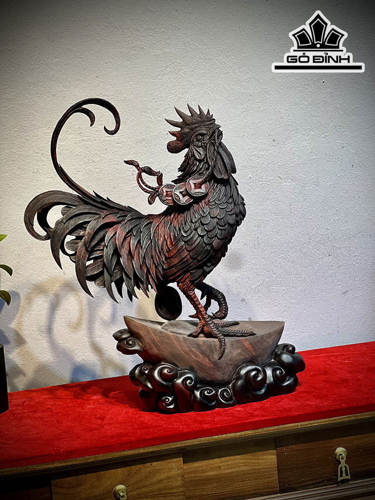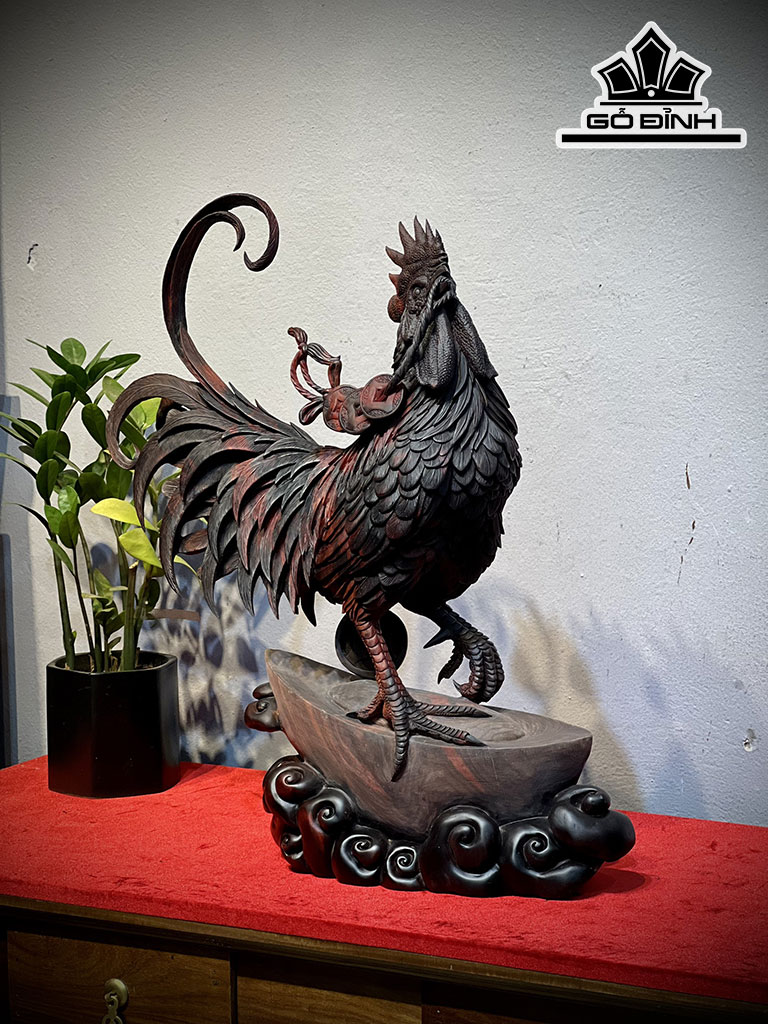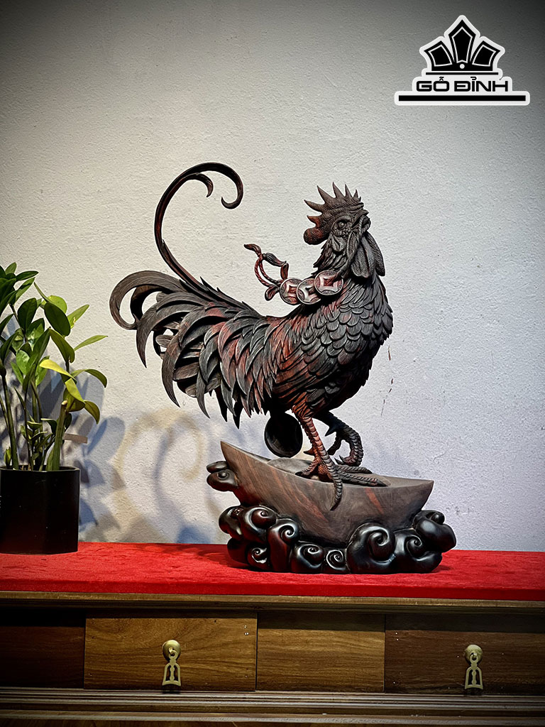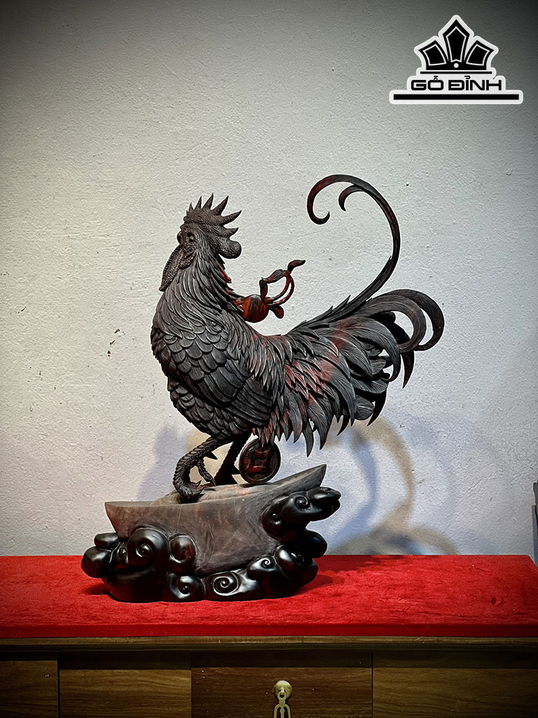 Tượng Nhất Kê Gỗ Trắc Cao 52 Ngang 42 Sâu 13 (cm)