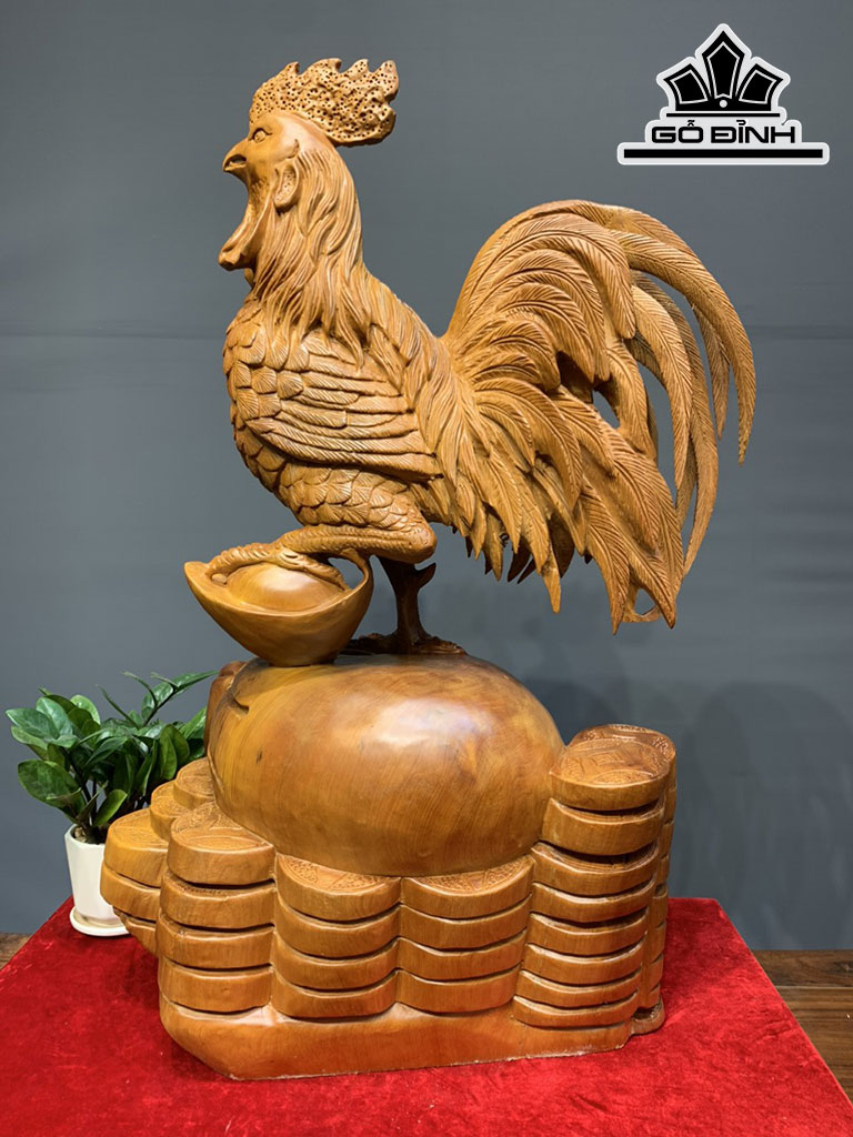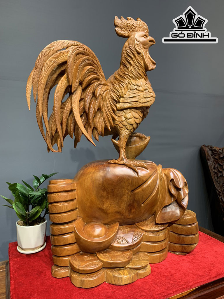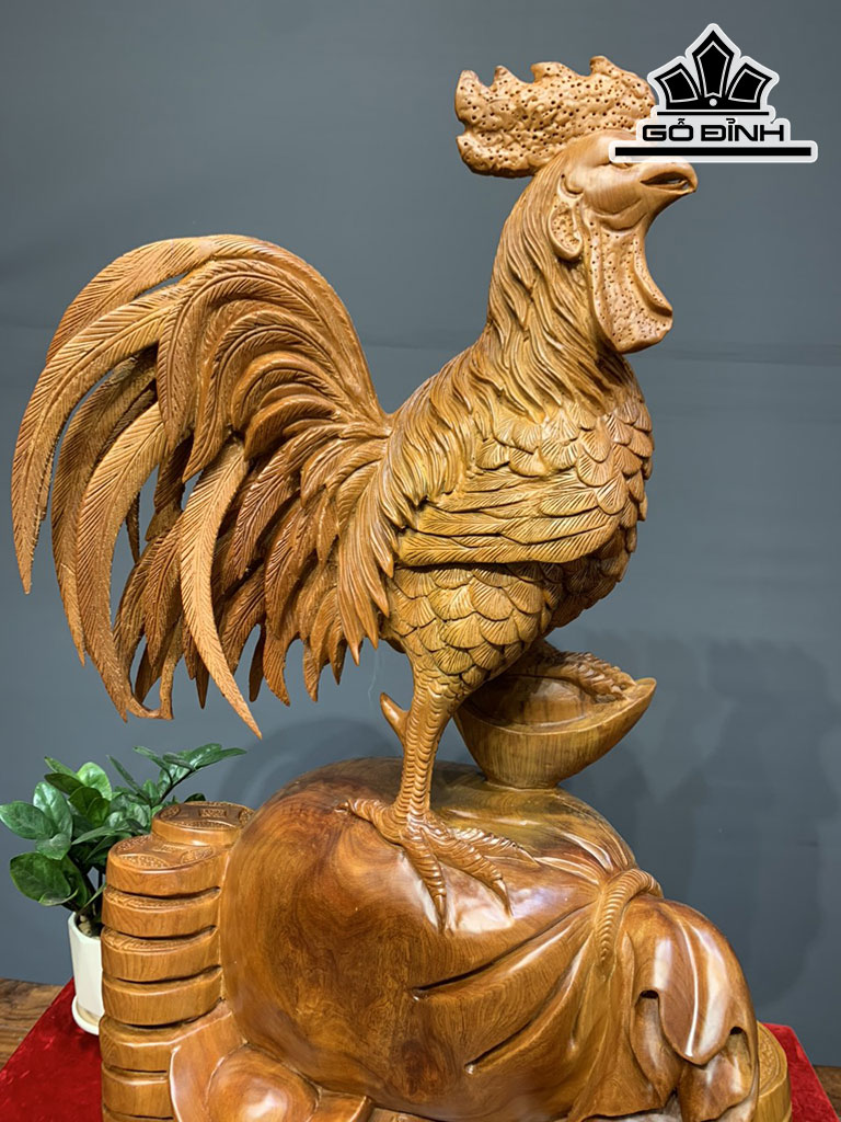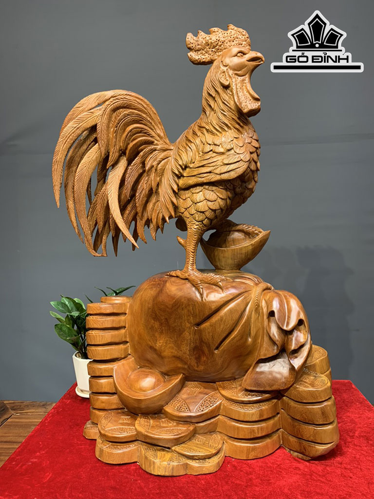 Tượng Nhất Kê Tài Lộc Gỗ Ngọc Am Cao 83 Ngang 52 Sâu 28 (cm)
