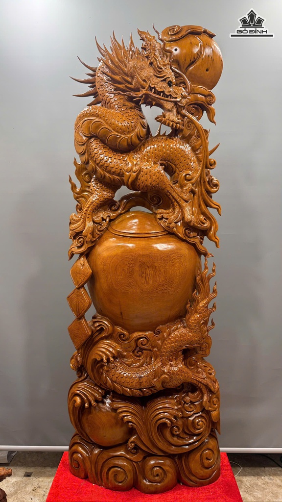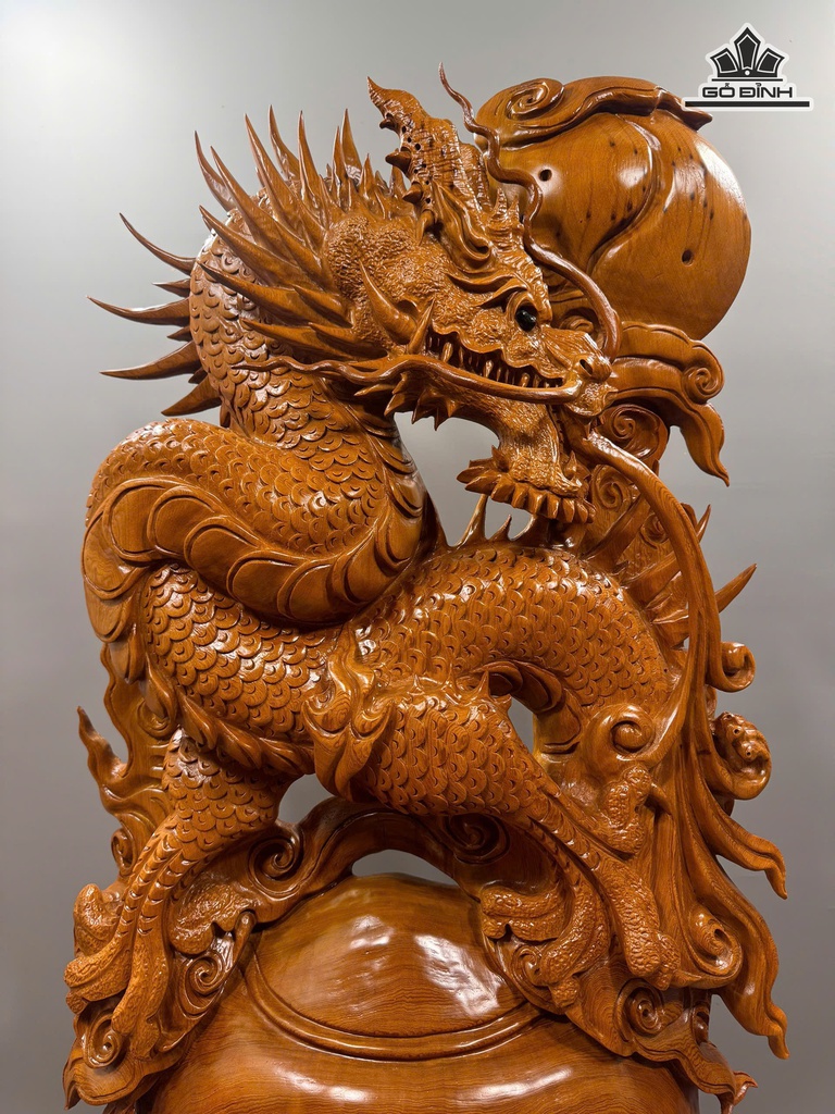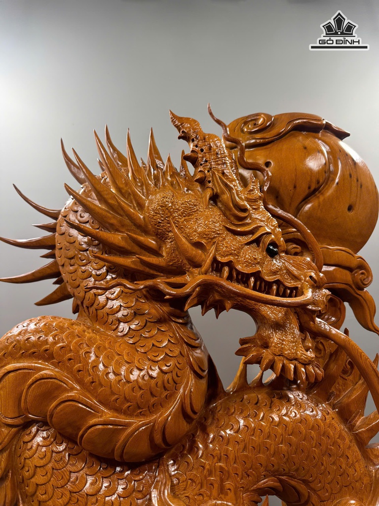 Tượng Nhất Long Bảo Châu Gỗ Ngọc Am Cao Cả Kỷ 195 Ngang 63 Sâu 22 (cm) - Kỷ Cao 25