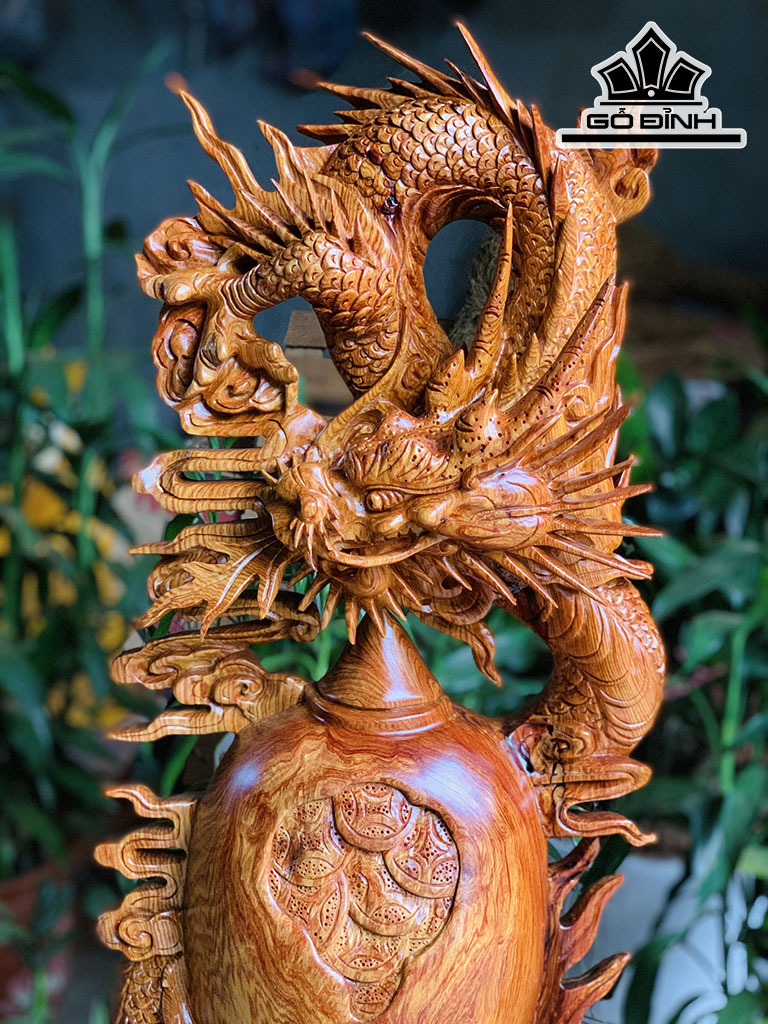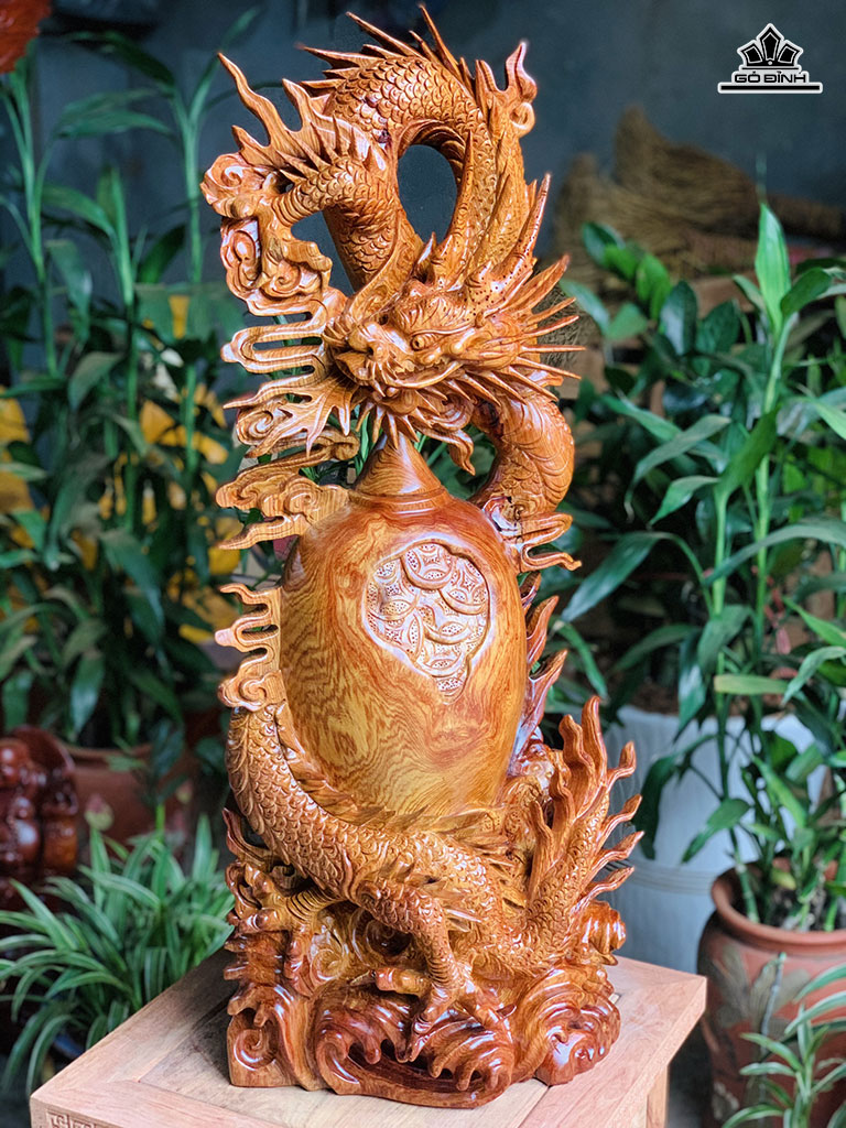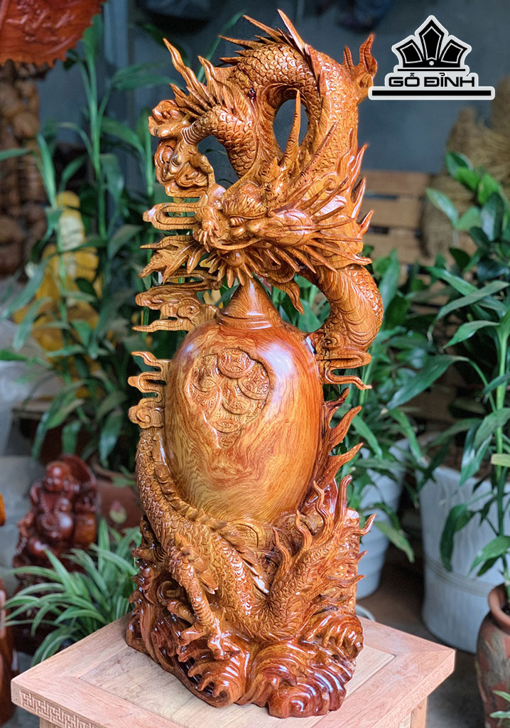 Tượng Nhất Long Chấn Chum Tiền Gỗ Cẩm Cao 75 Ngang 30 Sâu 20 (cm)
