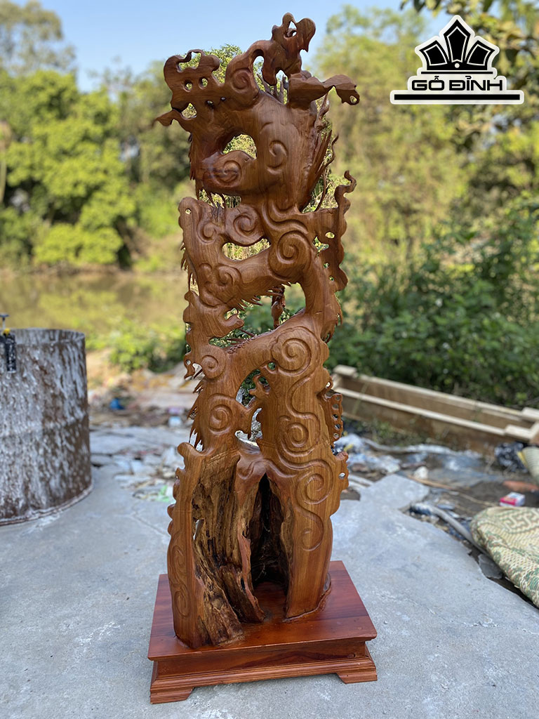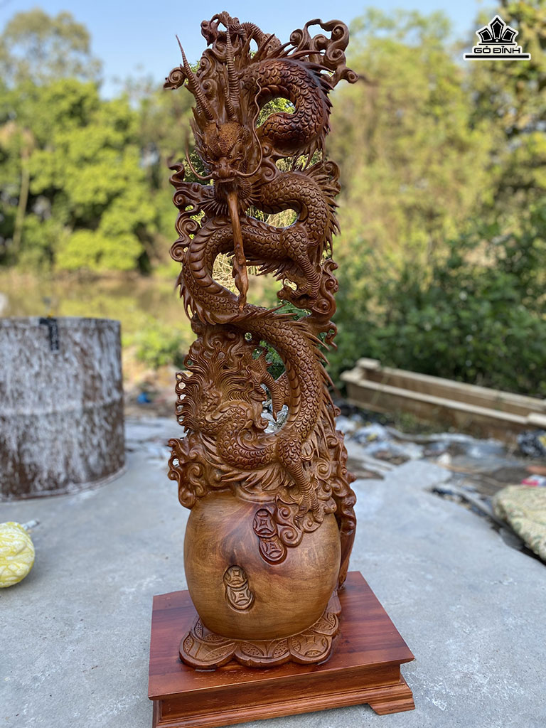 Tượng Nhất Long Chấn Chum Tiền Gỗ Hương Cao Cả Kỷ 120 Ngang 33 Sâu 28 (cm)