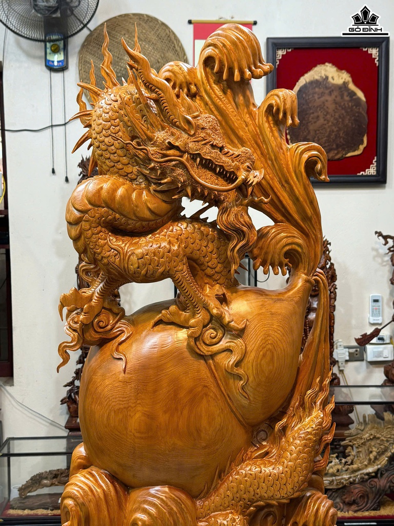 Tượng Nhất Long Chấn Hồ Lô Gỗ Ngọc Am Cao 124 Ngang 46 Sâu 18 (cm)
