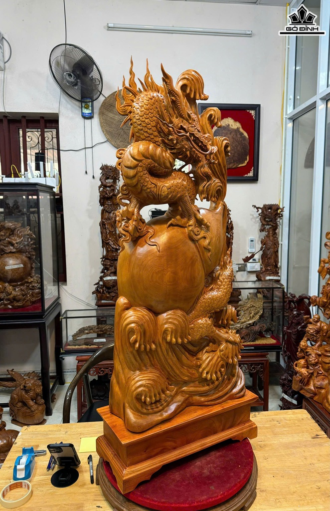 Tượng Nhất Long Chấn Hồ Lô Gỗ Ngọc Am Cao 124 Ngang 46 Sâu 18 (cm)