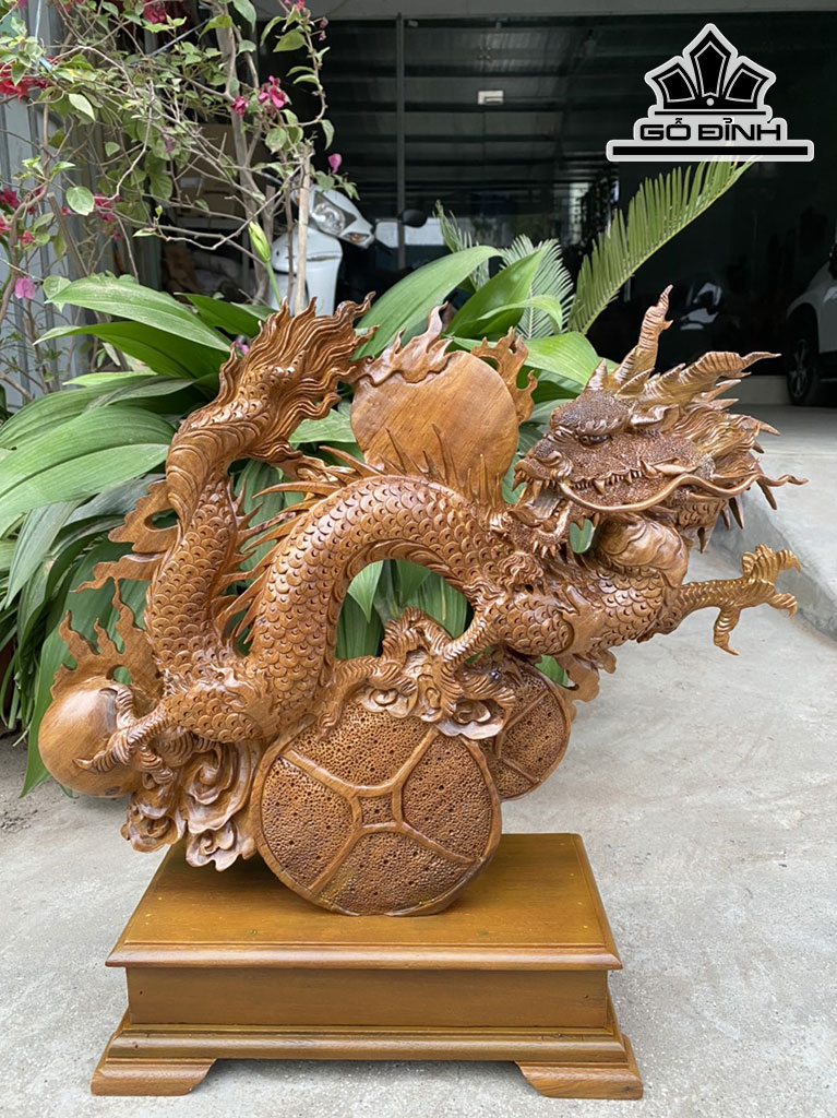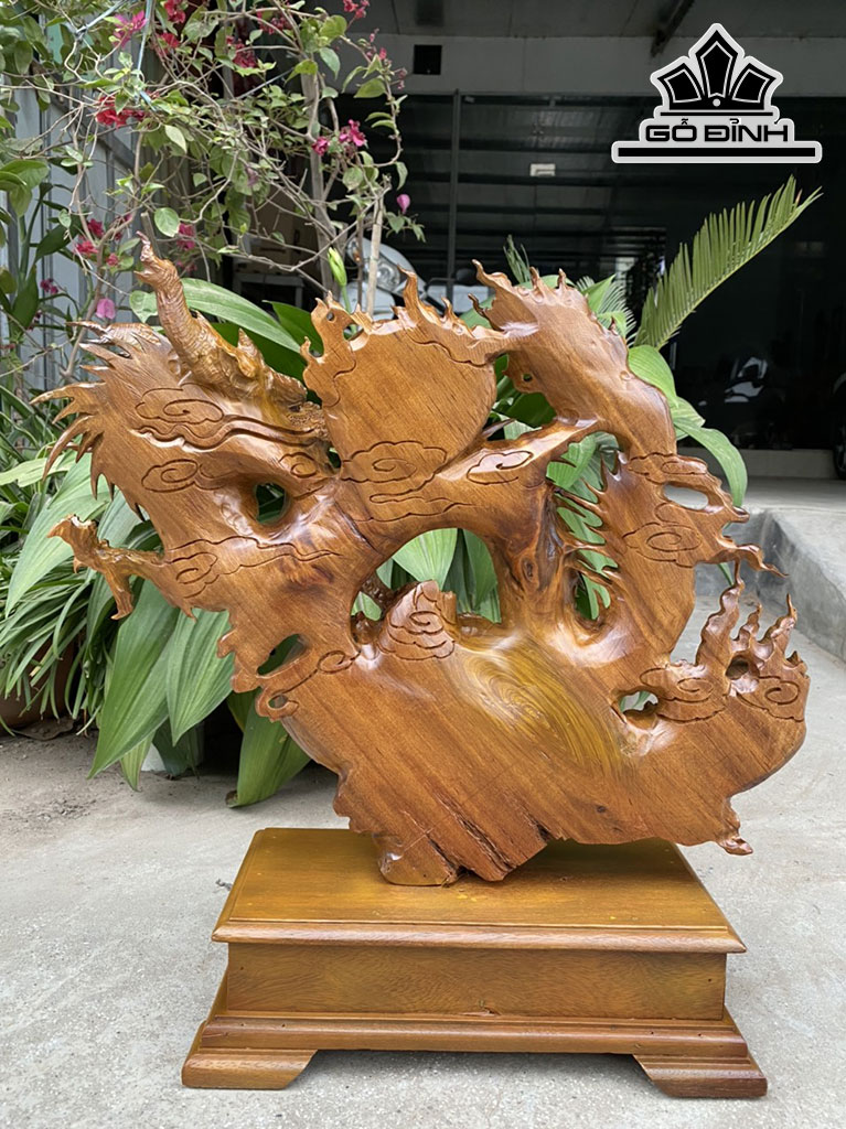 Tượng Nhất Long Gỗ Bách Xanh Cao 40 Ngang 50 Sâu 16 (cm)