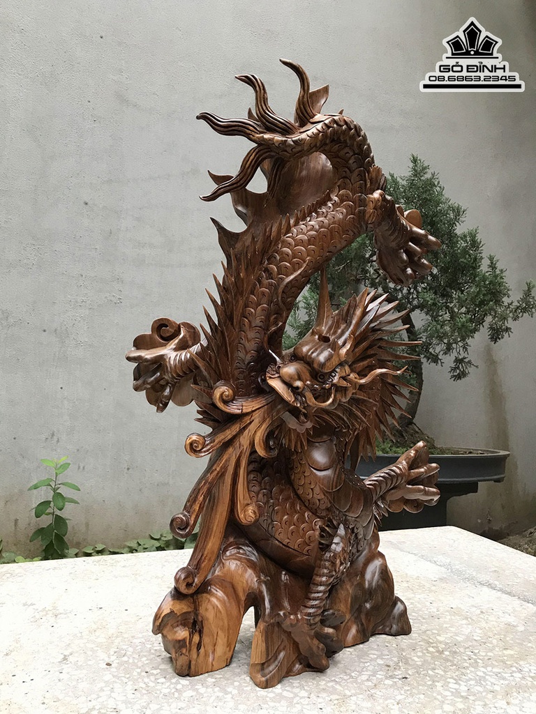 Tượng Nhất Long Gỗ Bách Xanh Cao 63 Ngang 46 Sâu 15 (cm)