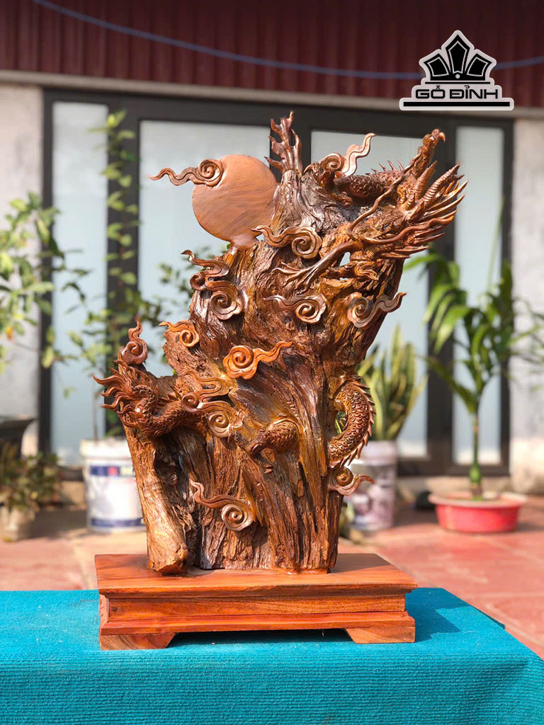 Tượng Nhất Long Gỗ Bách Xanh Cao 75 Ngang 43 Sâu 25 (cm)