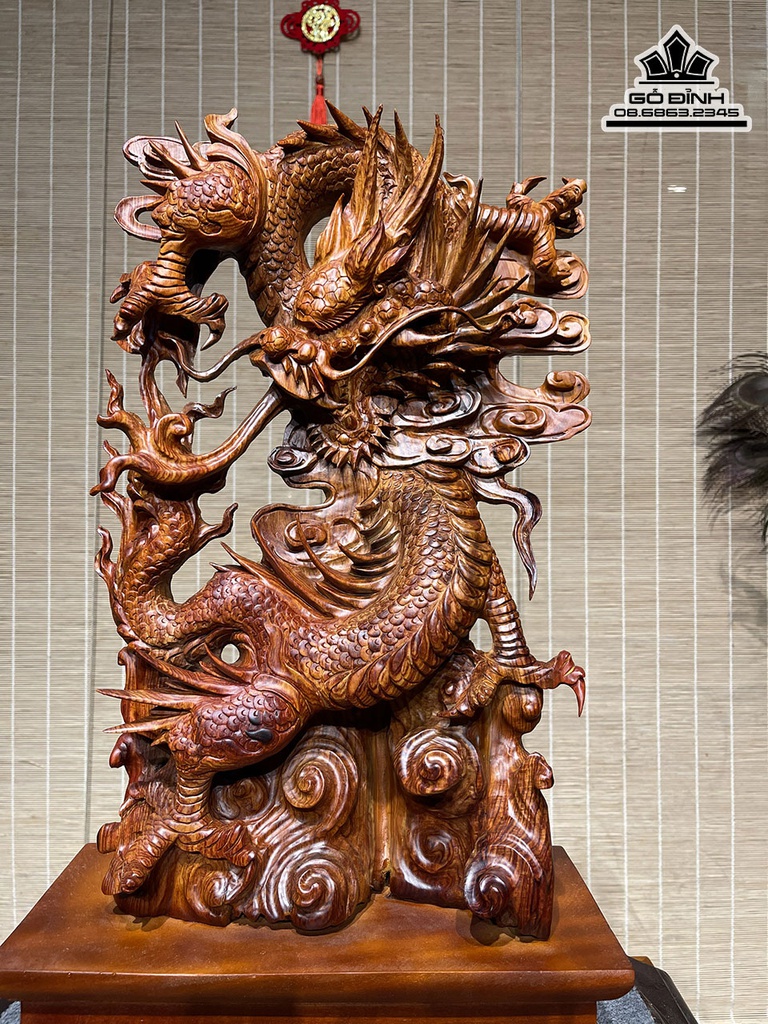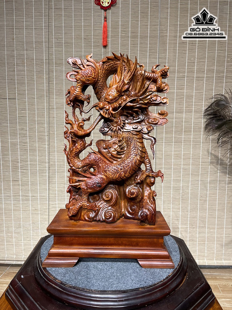 Tượng Nhất Long Gỗ Cẩm Lai Cao 42 Ngang 27 Sâu 12 (cm)