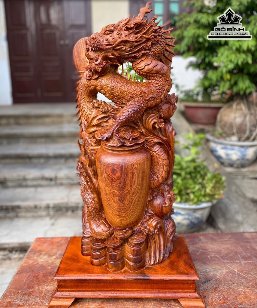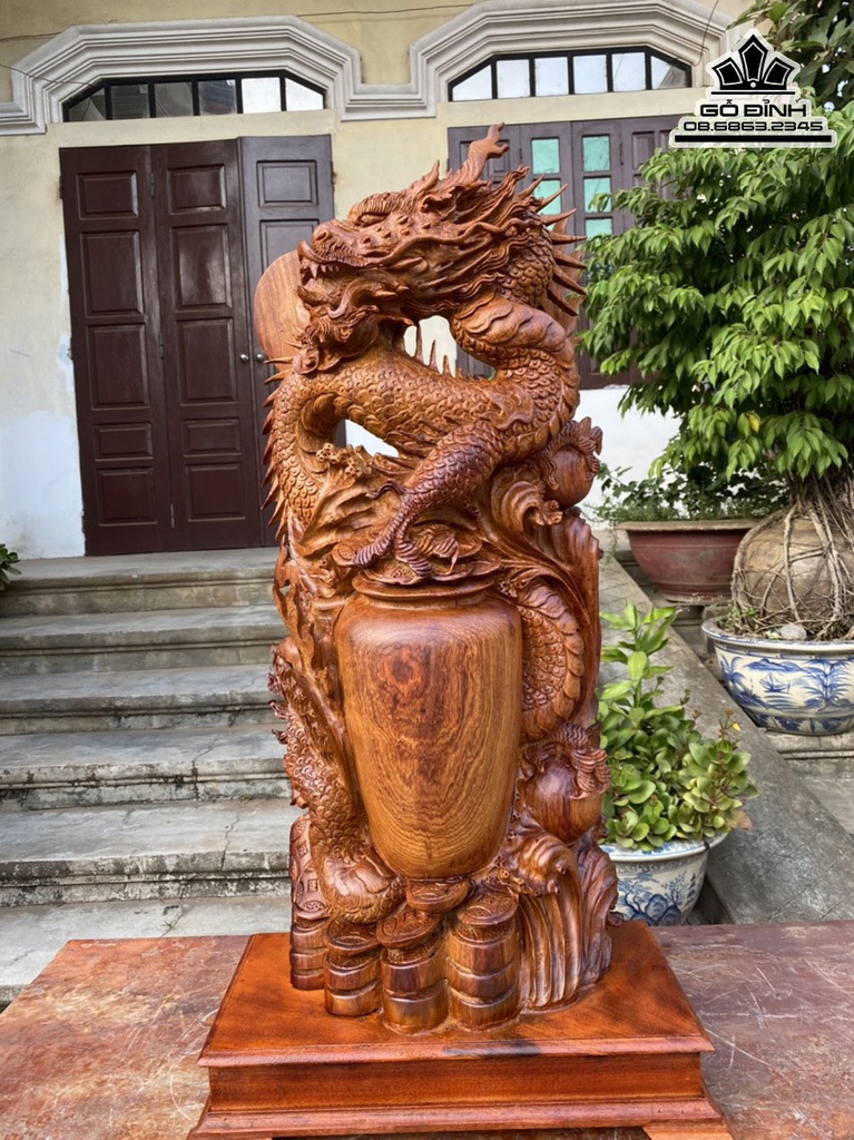 Tượng Nhất Long Gỗ Hương Cao 77 Ngang 36 Sâu 20 Cả Kỷ 86 (cm)