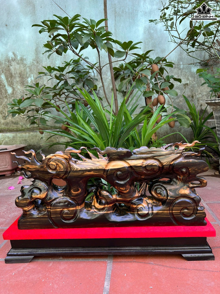 Tượng Nhất Long Gỗ Mun Hoa Cao 27 Ngang 60 Sâu 13 (cm) - Cao Cả Kỷ 37 (cm)