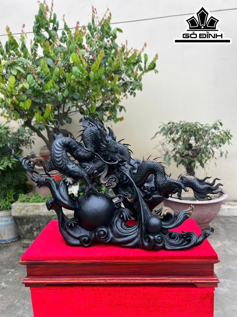 Tượng Nhất Long Gỗ Mun Sừng Cao Cả Kỷ 63 - Riêng Tượng Cao 52 Ngang 76 Sâu 30 (cm)