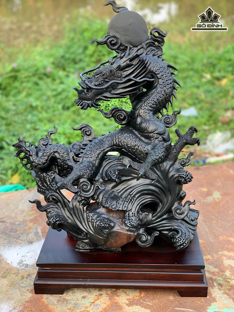 Tượng Nhất Long Gỗ Mun Sừng Cao Cả Kỷ 76 Ngang 56 Sâu 27 (cm) - Kỷ Cao 10 (cm)