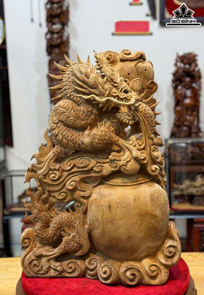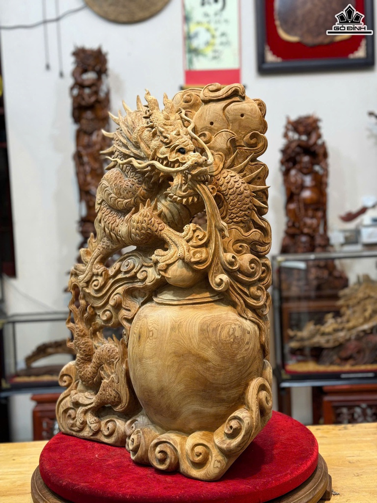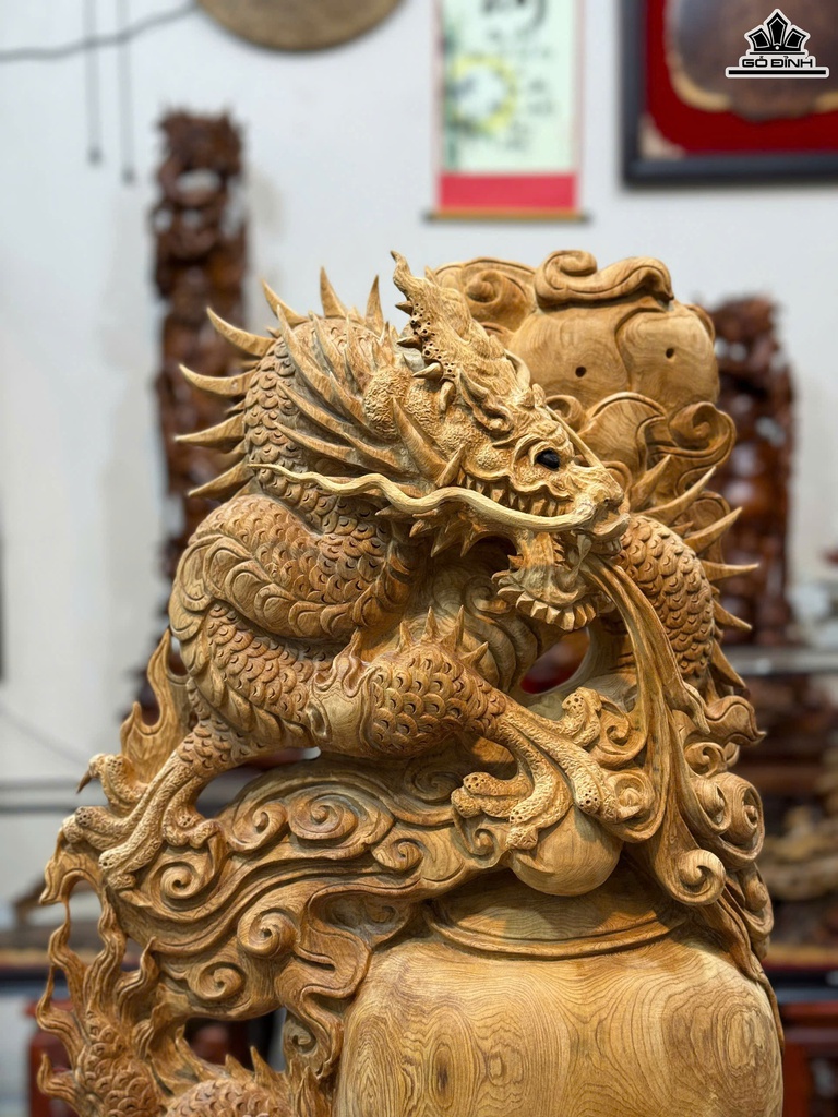 Tượng Nhất Long Gỗ Ngọc Am Cao 65 Ngang 45 Sâu 22 (cm)