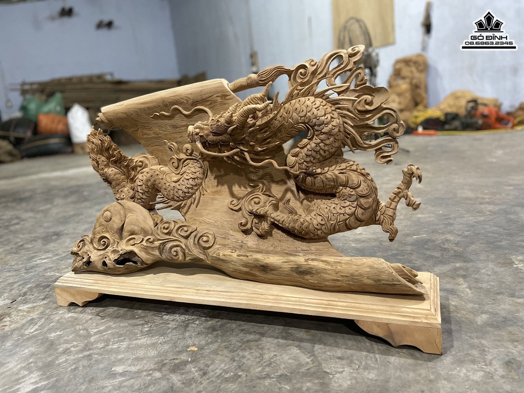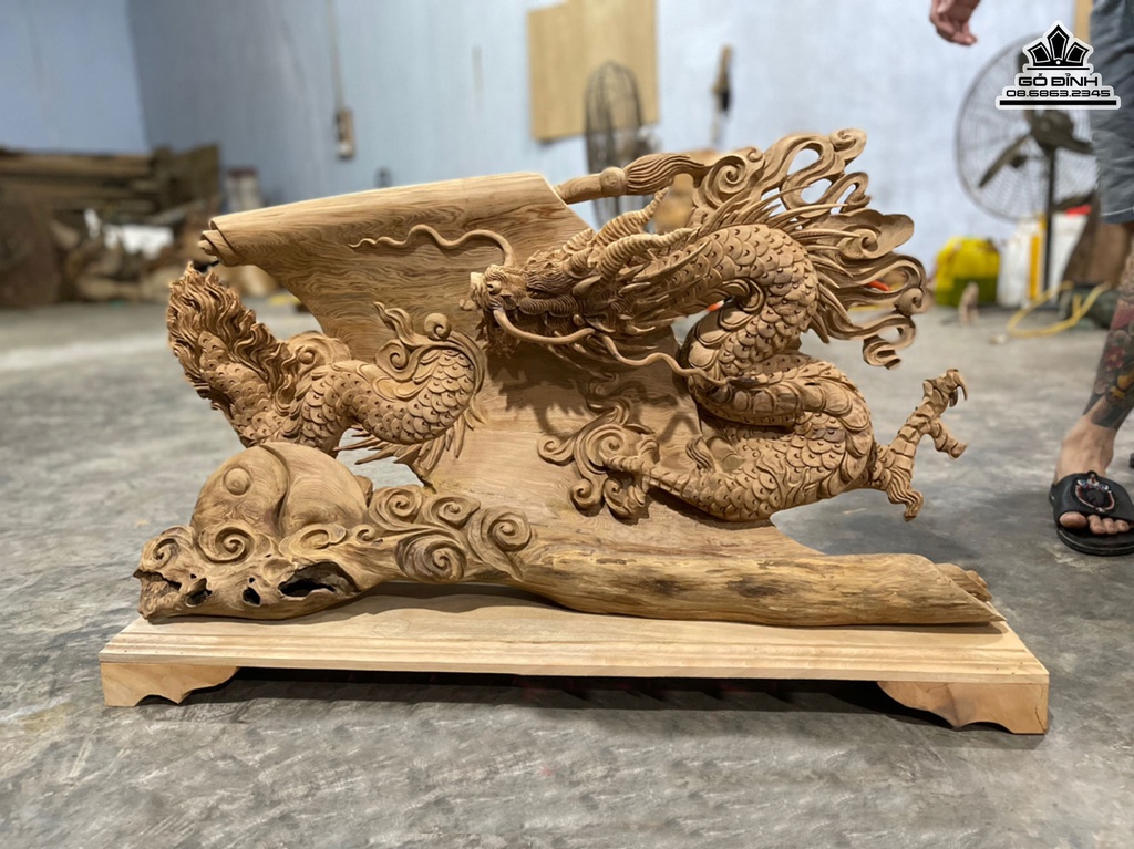 Tượng Nhất Long Gỗ Ngọc Am Cao 82 Ngang 42 Sâu 20 (cm)