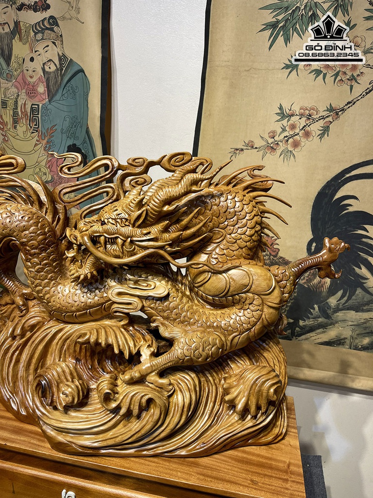 Tượng Nhất Long Gỗ Ngọc Am Cao 85 Ngang 46 Sâu 26 (cm)