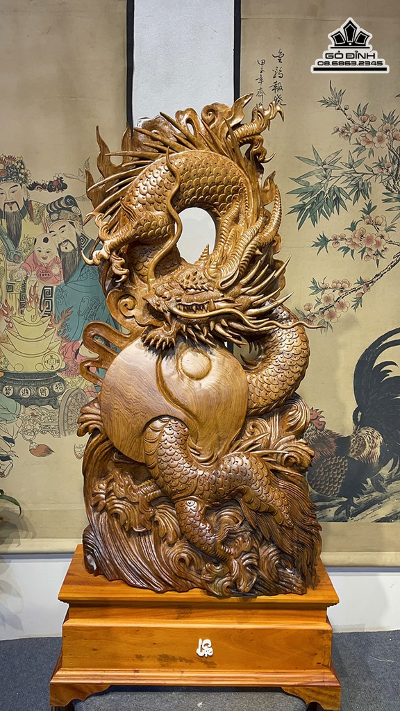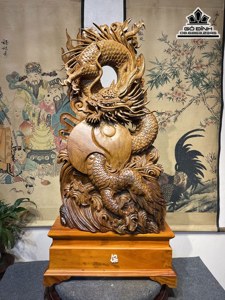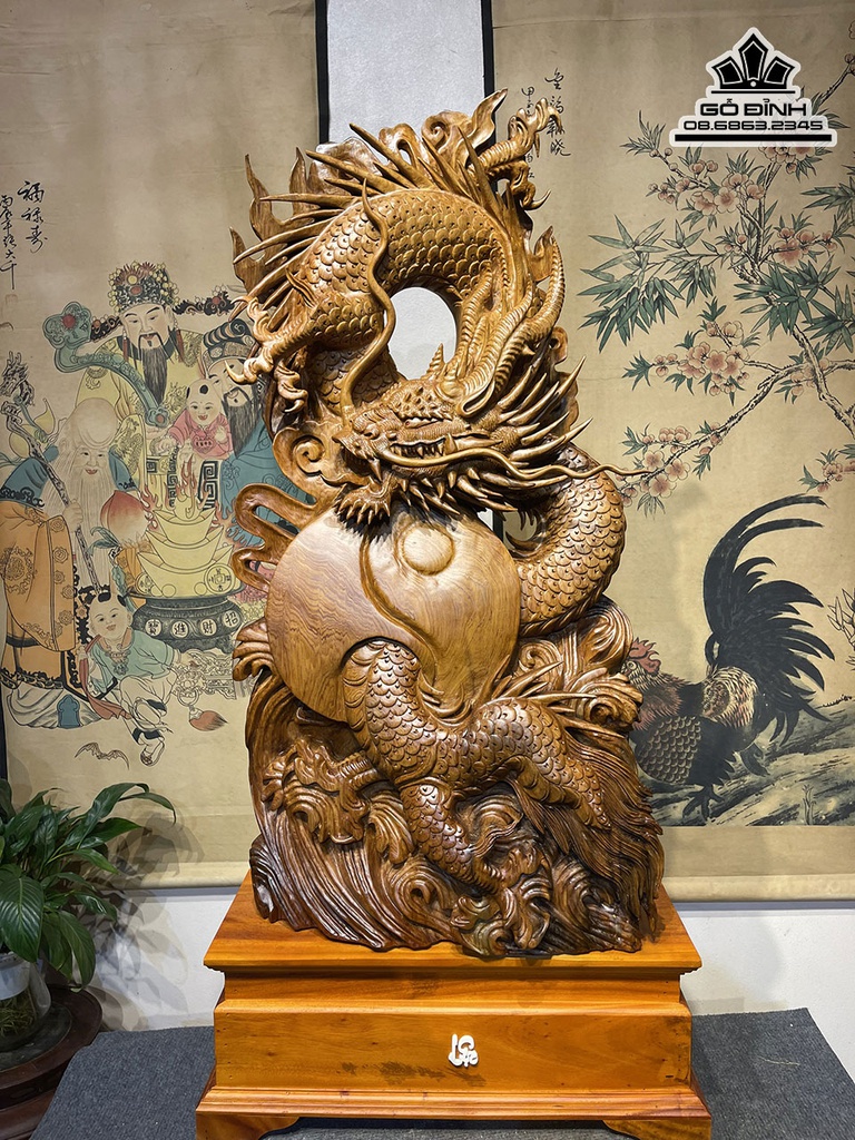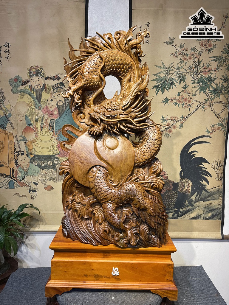 Tượng Nhất Long Gỗ Ngọc Am Cao 90 Rộng 48 Sâu 20 Cả Kỷ 110 (cm)