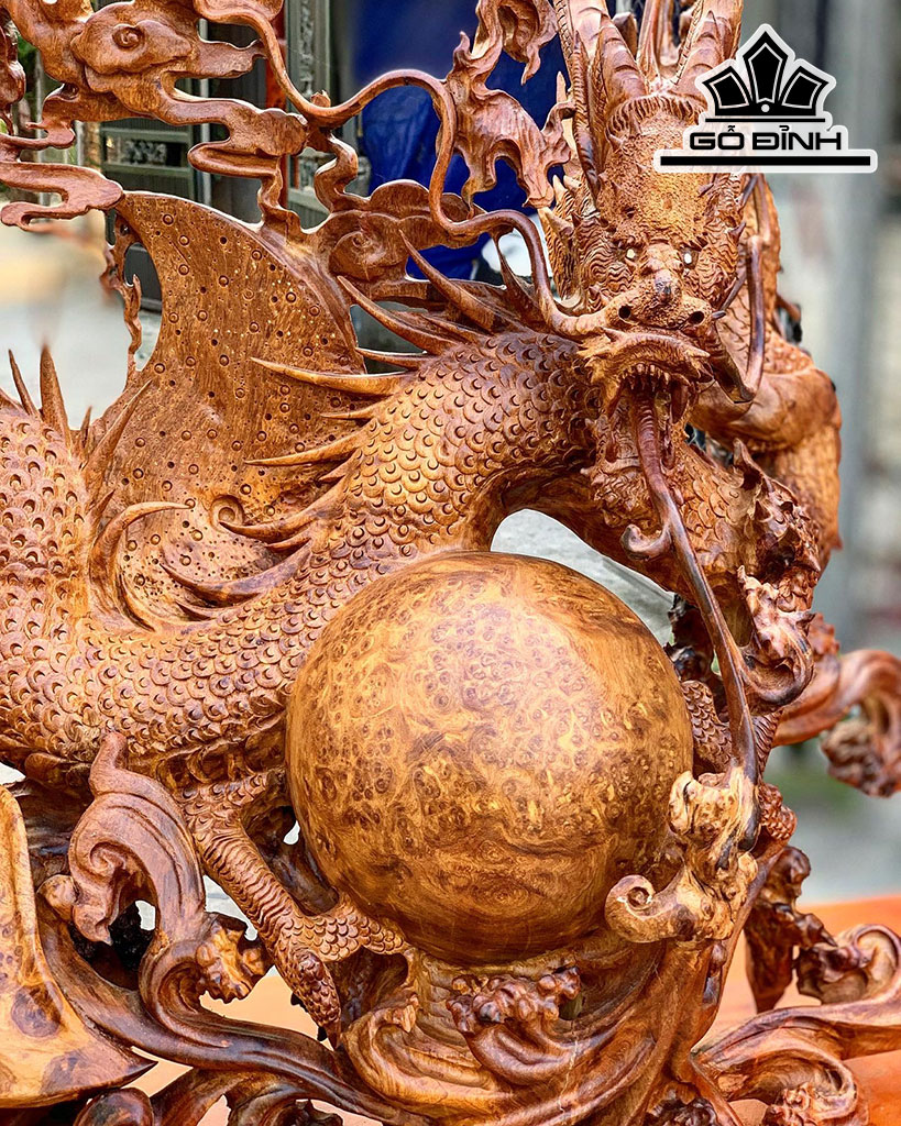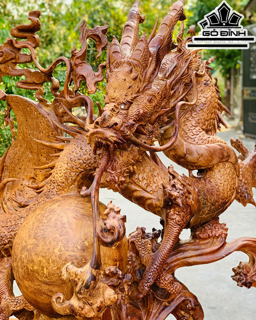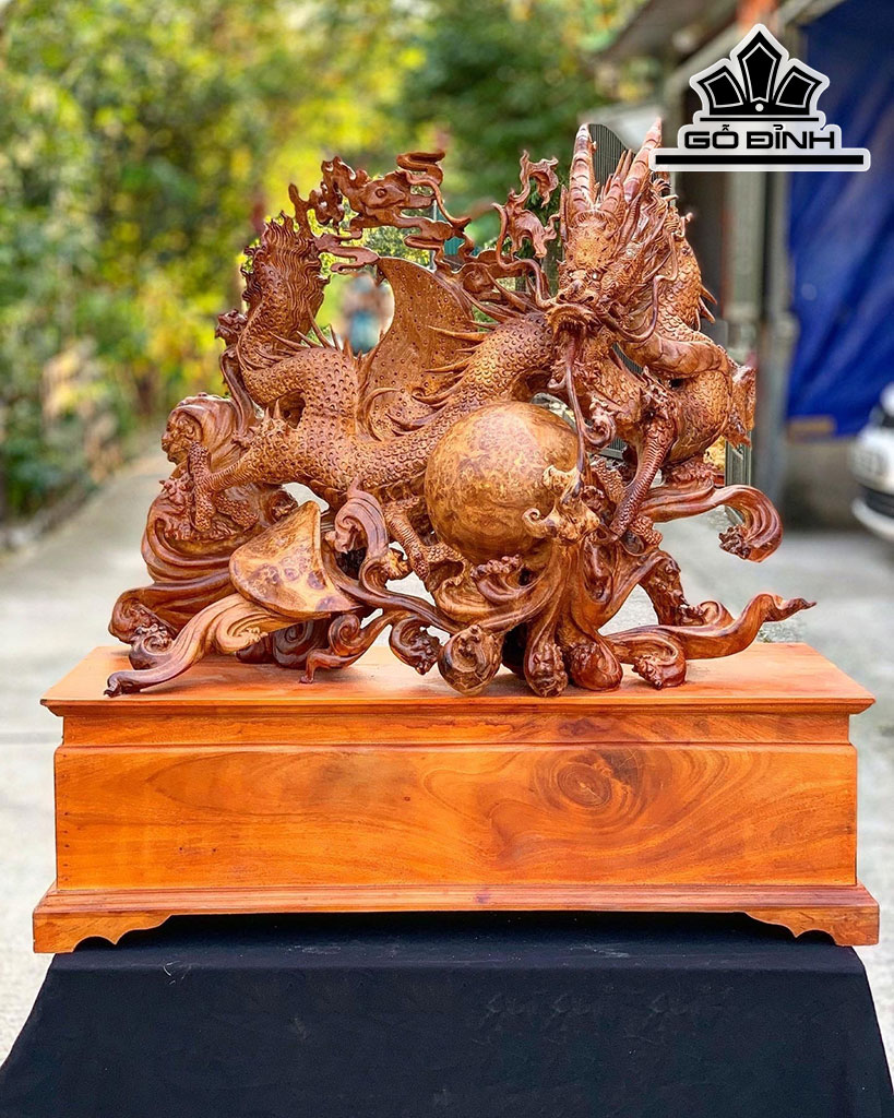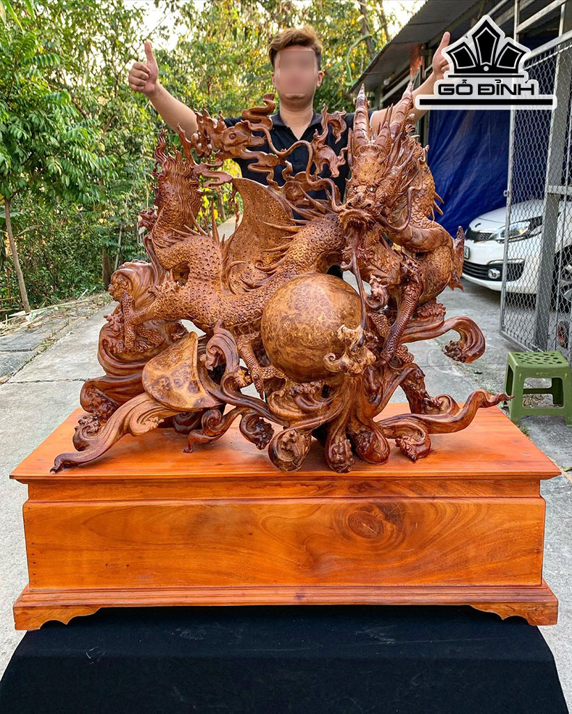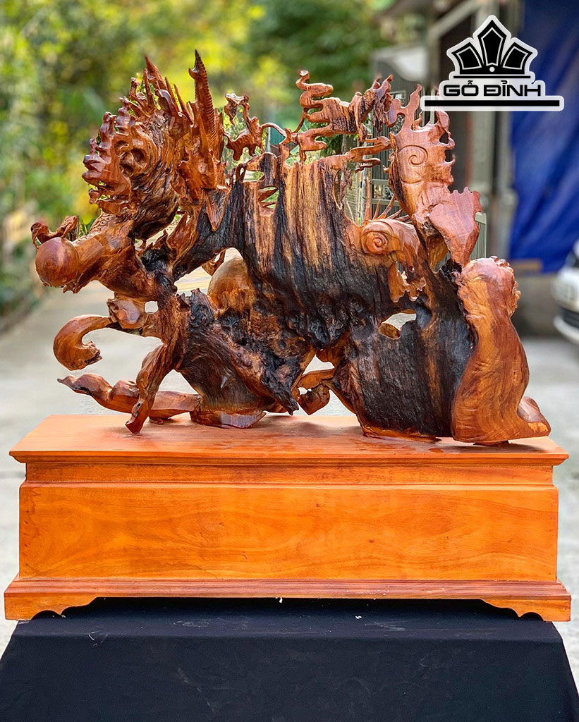Tượng Nhất Long Gỗ Nu Hương Cao 82 Ngang 80 Sâu 32 (cm)
