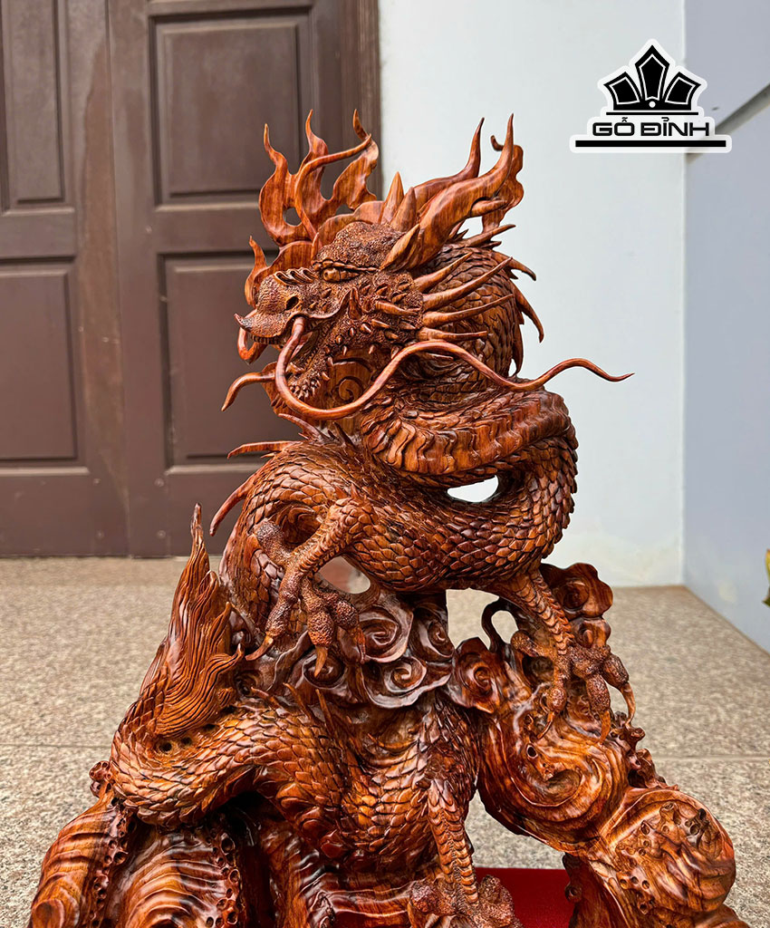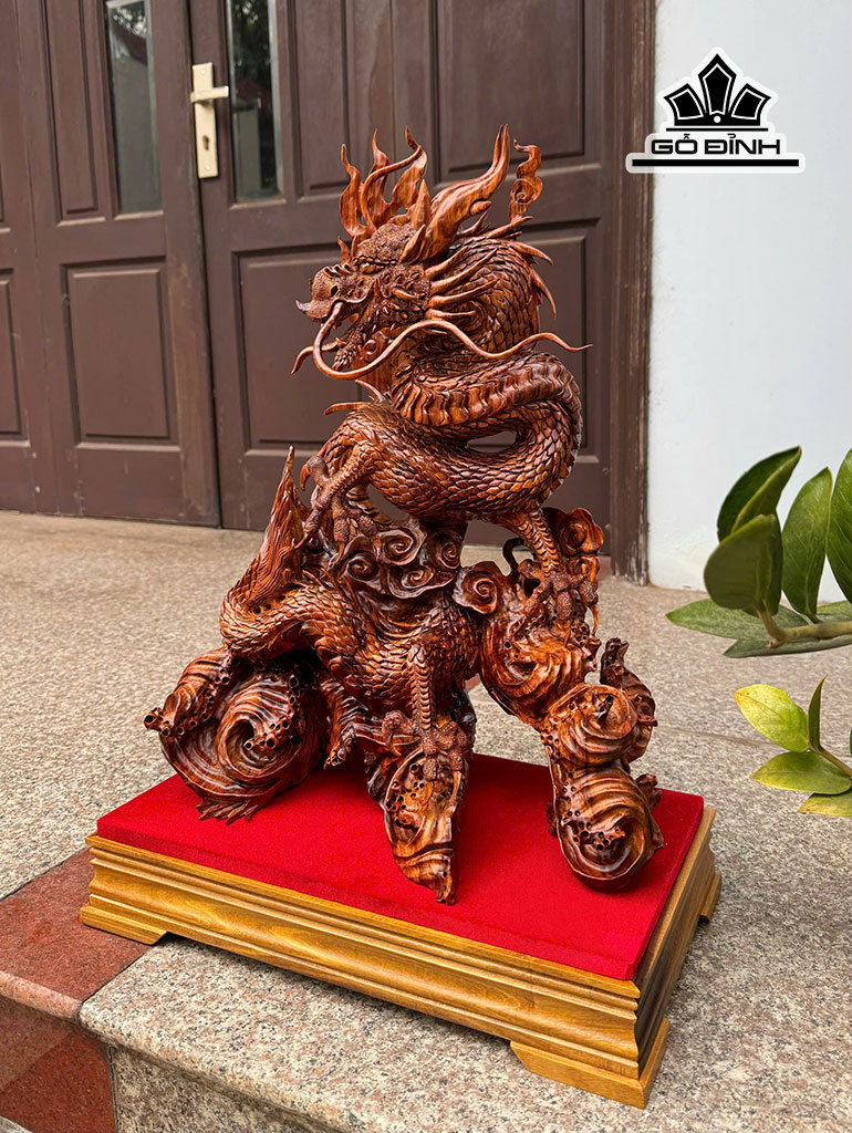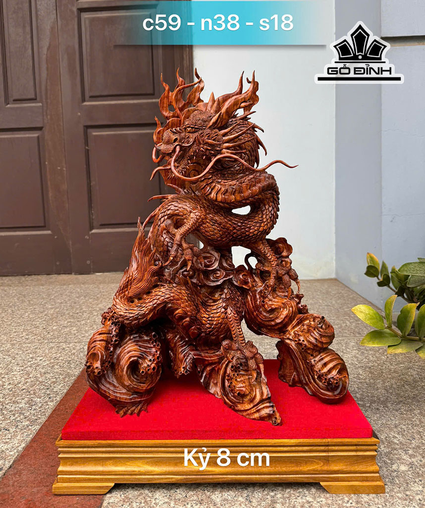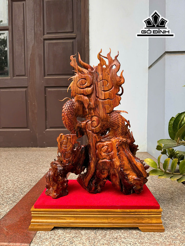Tượng Nhất Long Gỗ Sưa Cao 59 Ngang 38 Sâu 18 (cm)