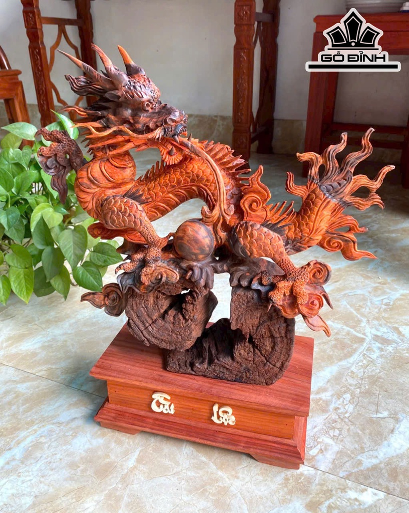 Tượng Nhất Long Gỗ Trắc Cao 47 Ngang 41 Sâu 11 (cm)