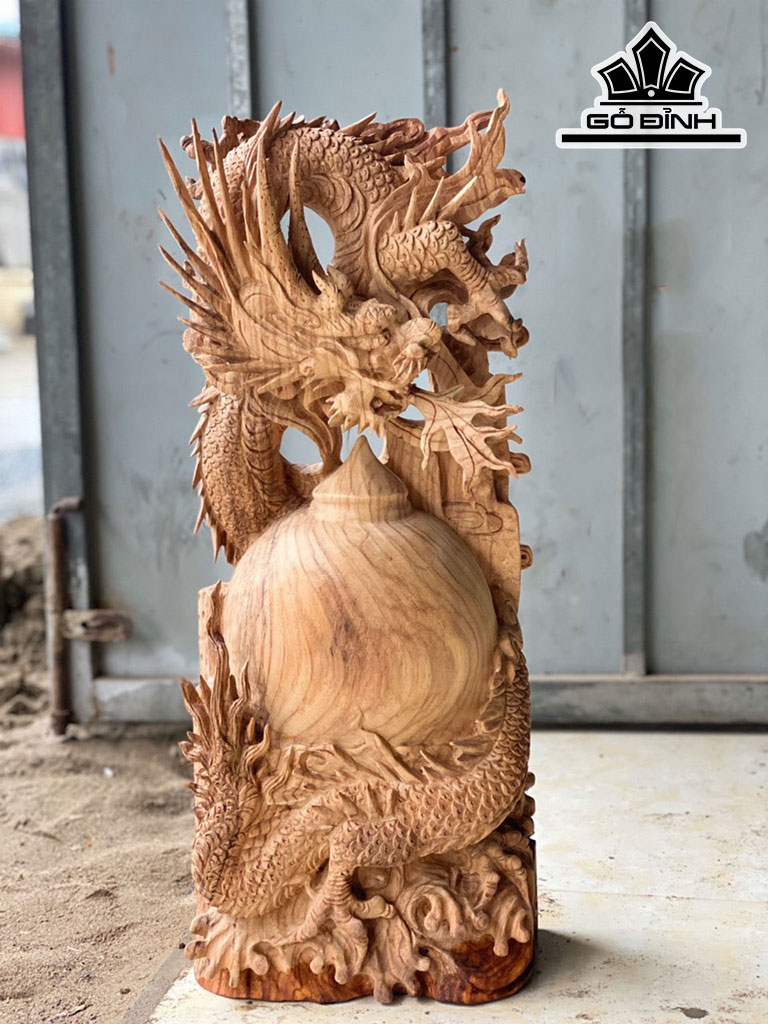 Tượng Nhất Long Nhả Ngọc Gỗ Cà Te Cao 65 Ngang 26 Sâu 15 (cm)