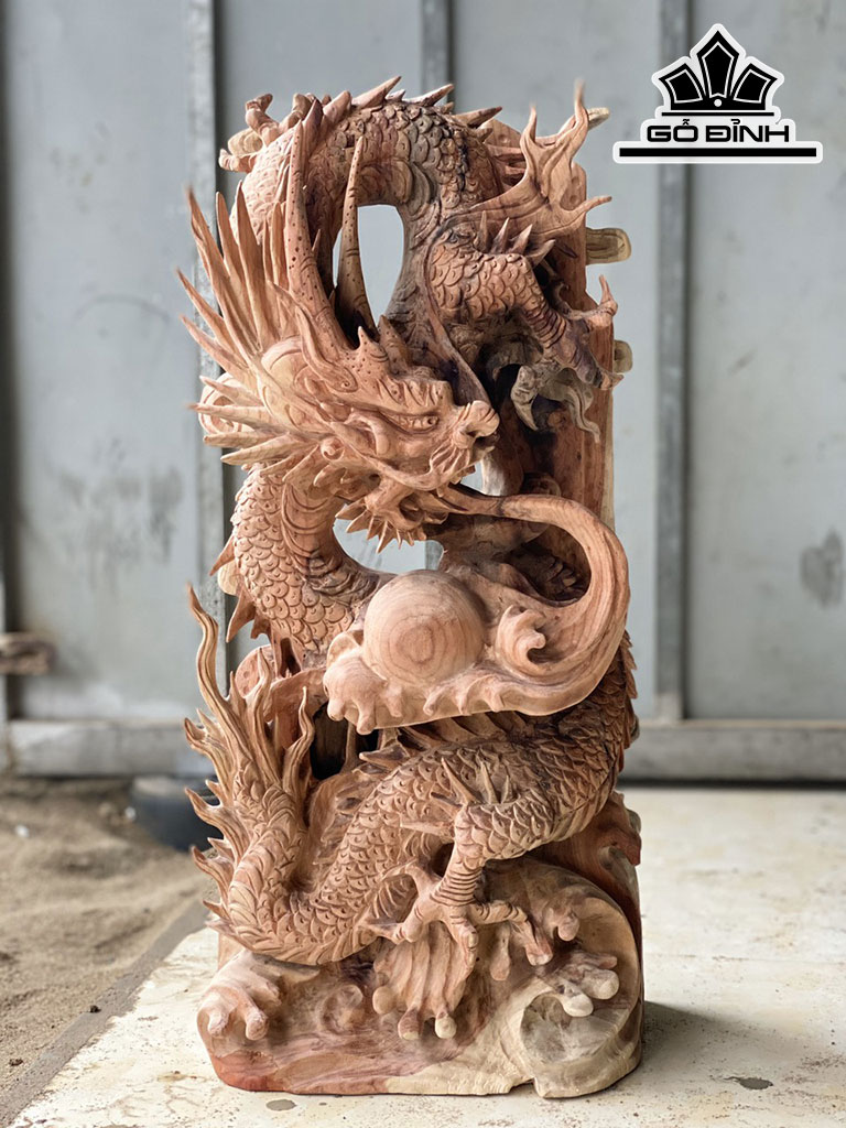 Tượng Nhất Long Nhả Ngọc Gỗ Hương Cao 56 Ngang 26 Sâu 16 (cm)