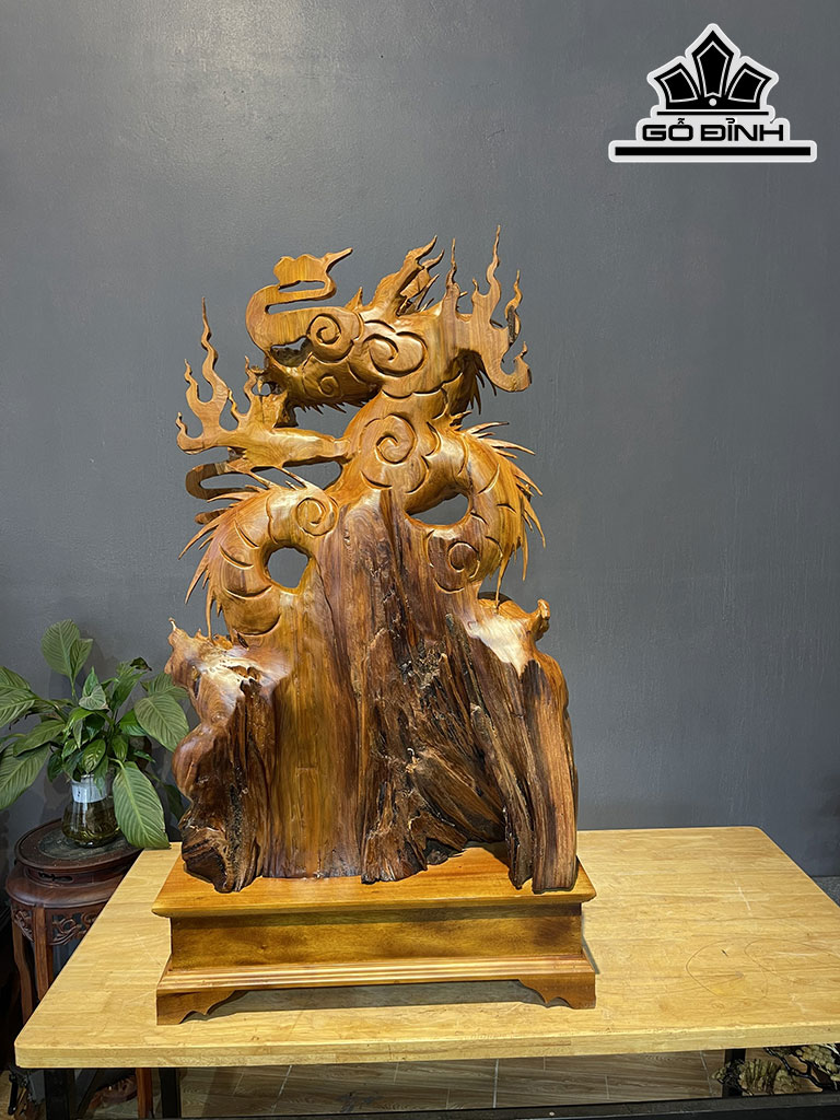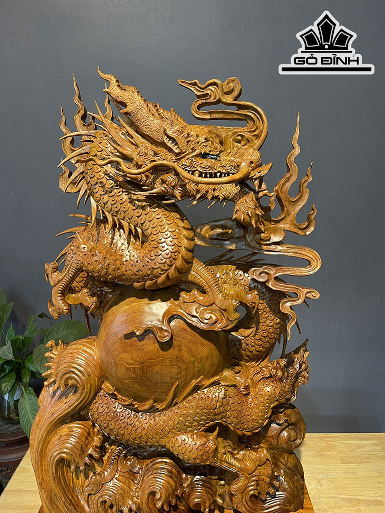 Tượng Nhất Long Nhả Ngọc Gỗ Ngọc Am Cao 85 Ngang 53 Sâu 20 (cm)
