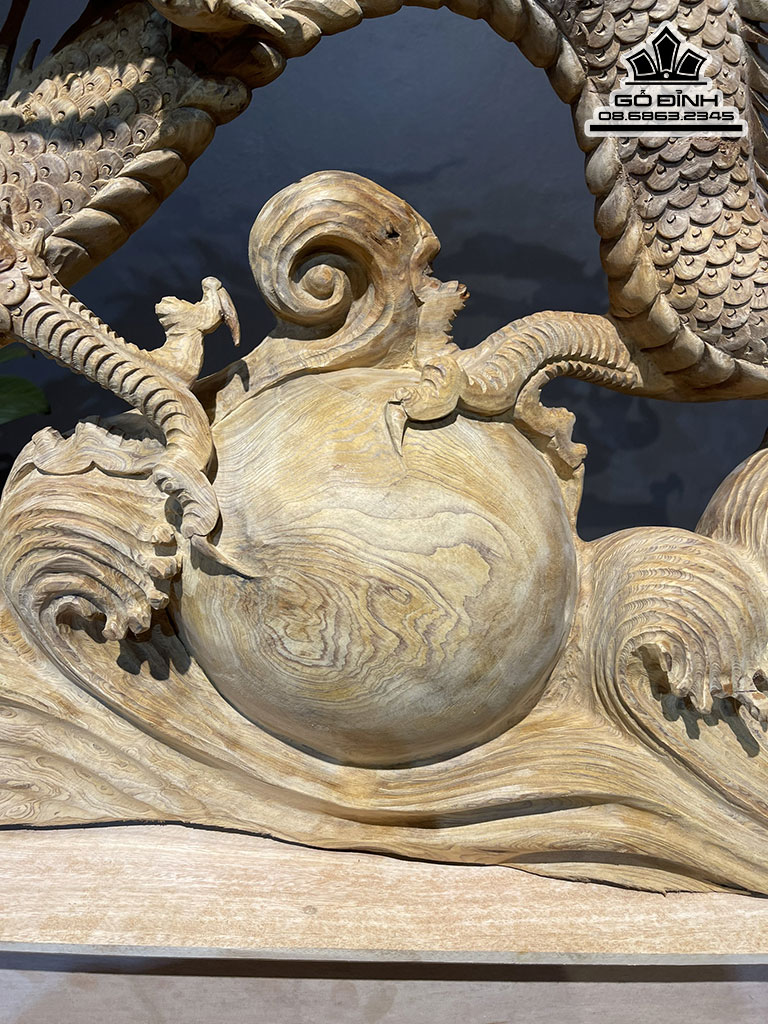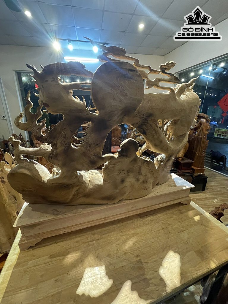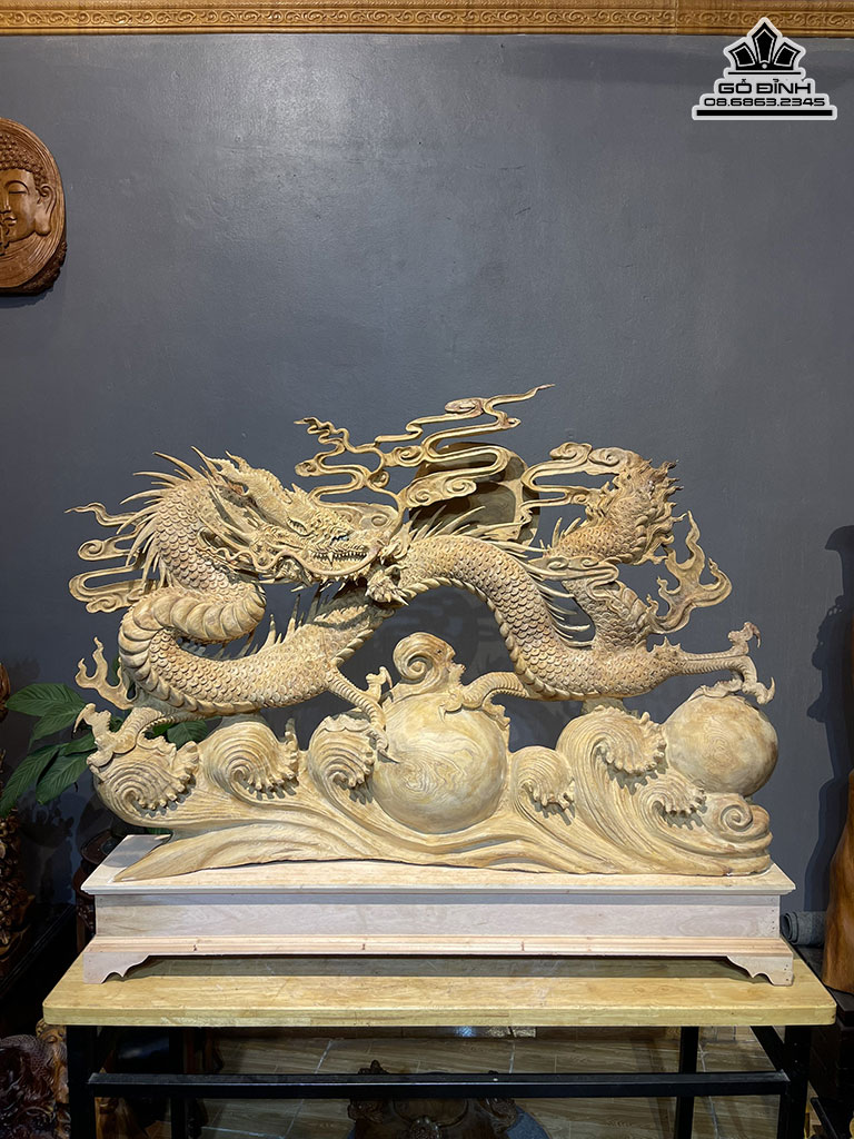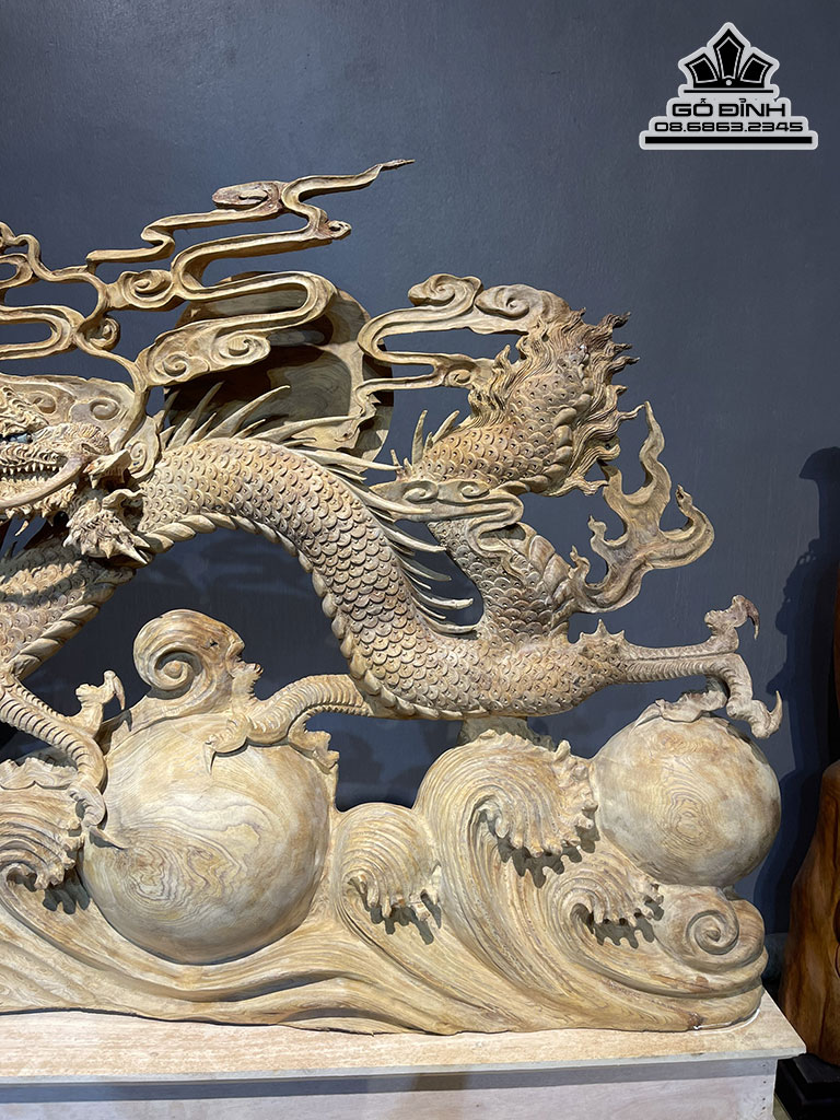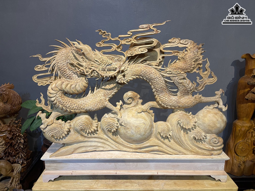 Tượng Nhất Long Nhả Ngọc Gỗ Ngọc Am Cao 95 Ngang 110 Sâu 18 Cao Cả Kỷ 110 (cm)