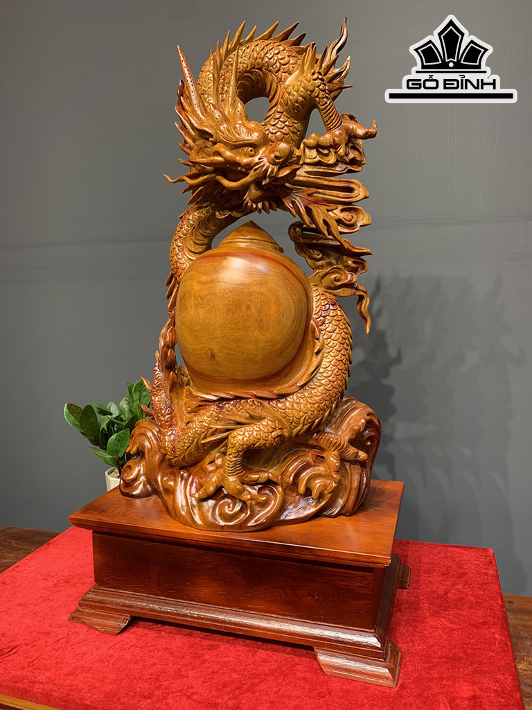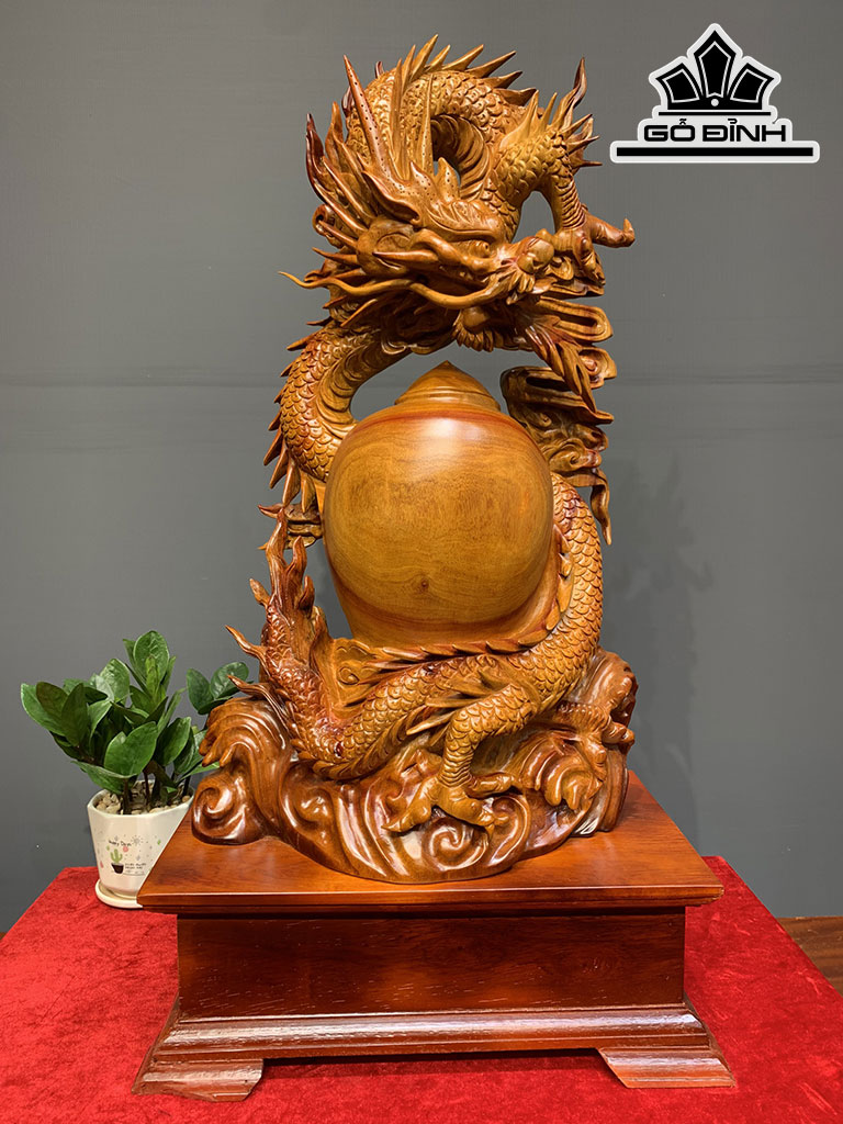 Tượng Nhất Long Quấn Chum Gỗ Hương Cao 76 Ngang 42 Sâu 26 (cm)