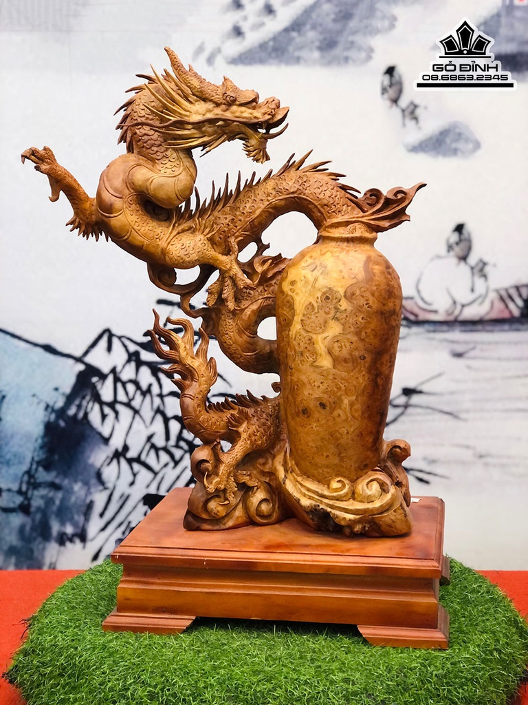 Tượng Nhất Long Quấn Chum Gỗ Nu Hương