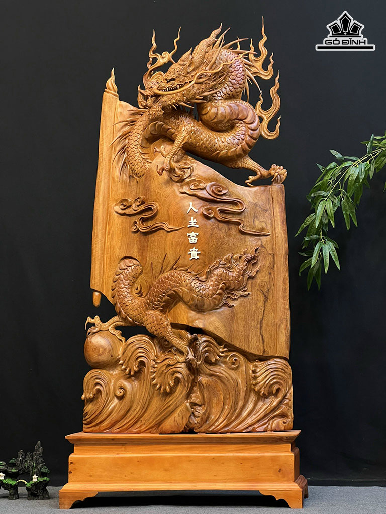 Tượng Nhất Long Quấn Thư Gỗ Hương Cao 142 Ngang 64 Sâu 22 (cm)