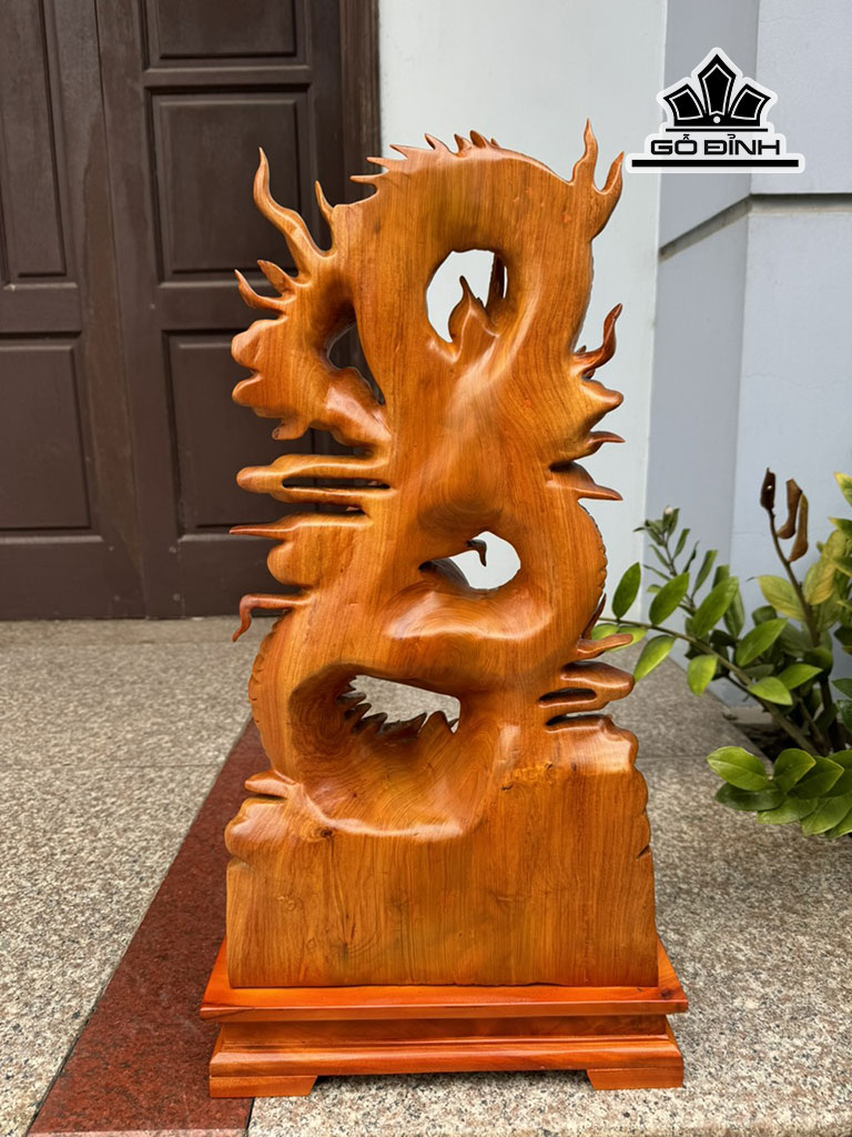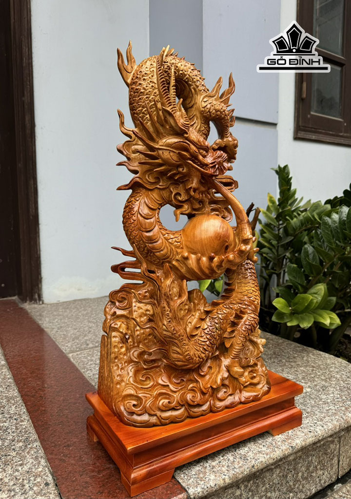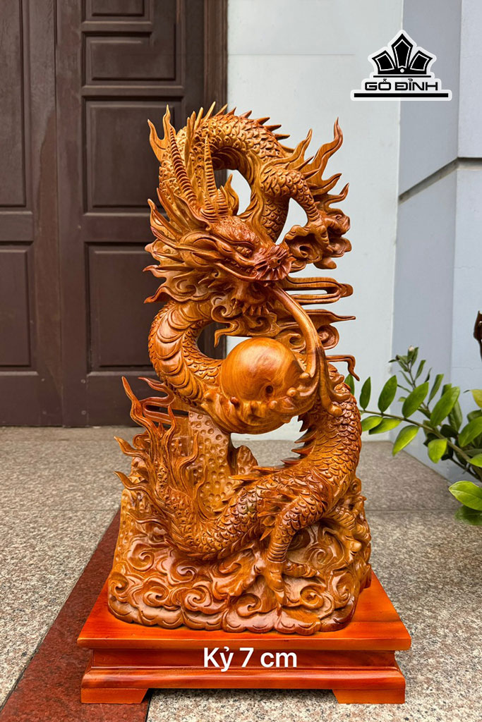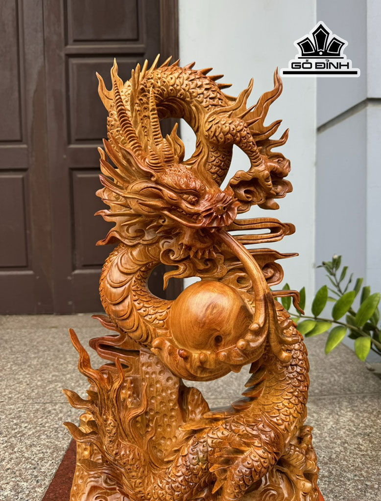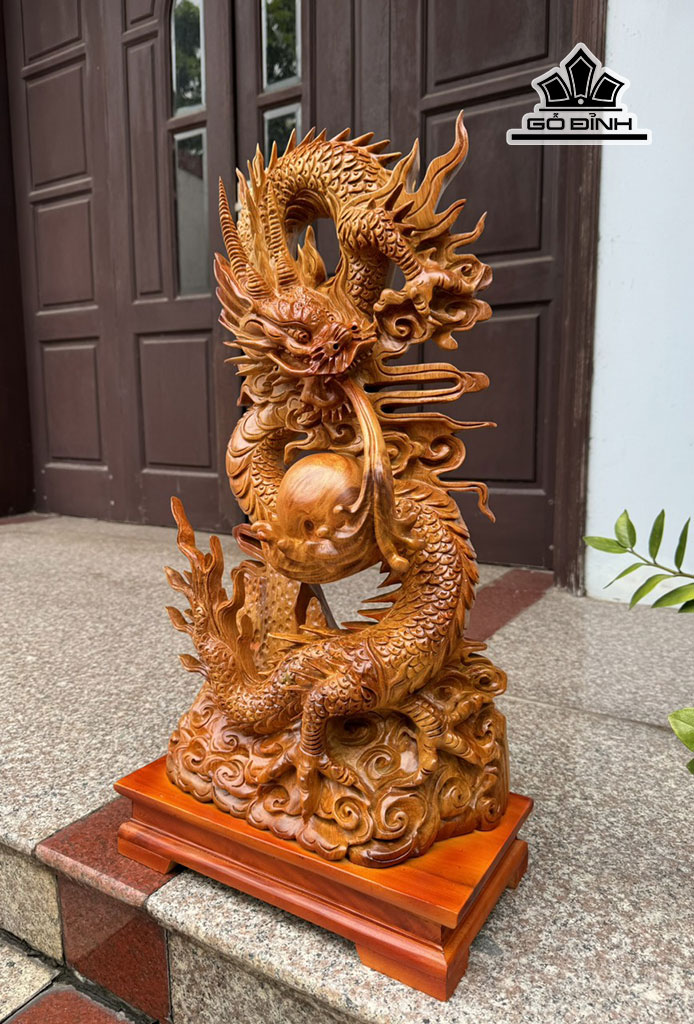 Tượng Nhất Long ( Rồng ) Nhả Ngọc Gỗ Hương Cao Cả Kỷ 67 Ngang 32 Sâu 15 (cm)