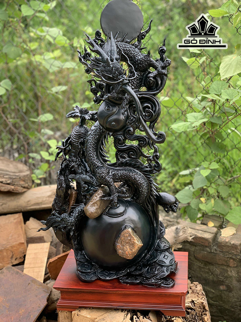 Tượng Nhất Long Trấn Bình Gỗ Mun Sừng Cao Riêng Tượng 90 Cả Kỷ 100 Ngang 47 Sâu 20 (cm)