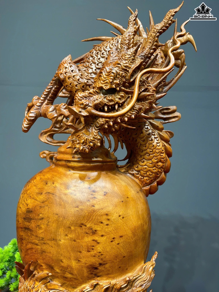 Tượng Nhất Long Trấn Bình Phú Quý Gỗ Nu Ngọc Am Cao Cả Kỷ 72 - Riêng Kỷ Cao 7 Ngang 28 Sâu 25 (cm)