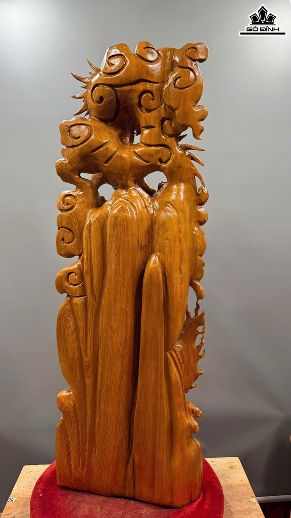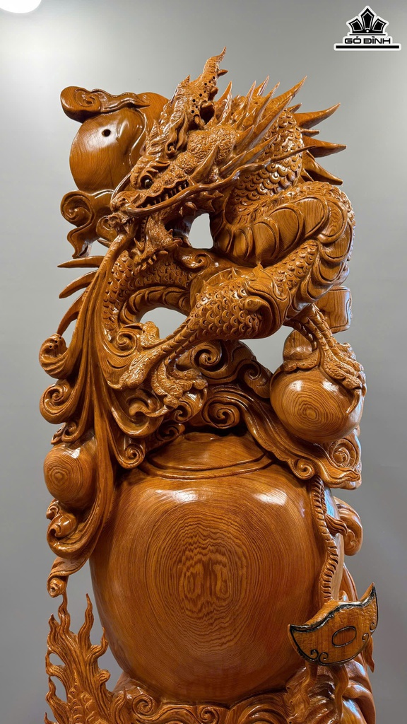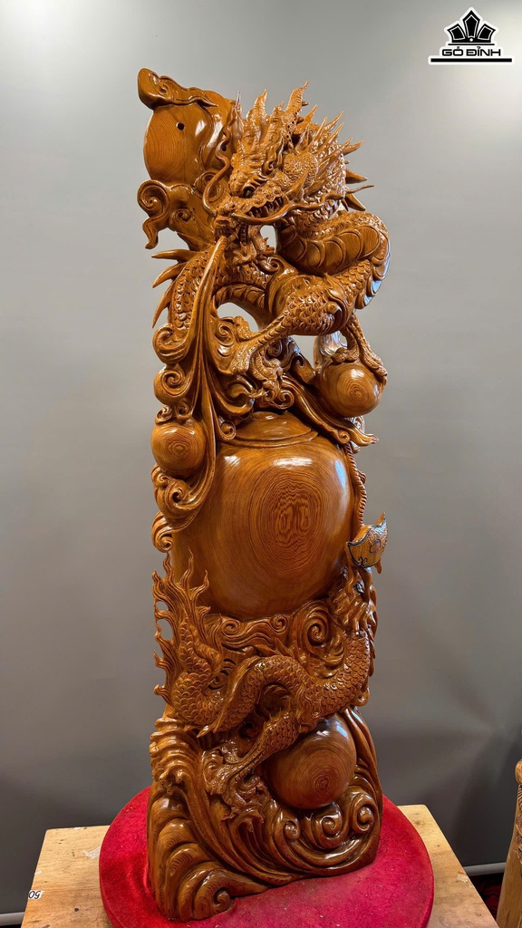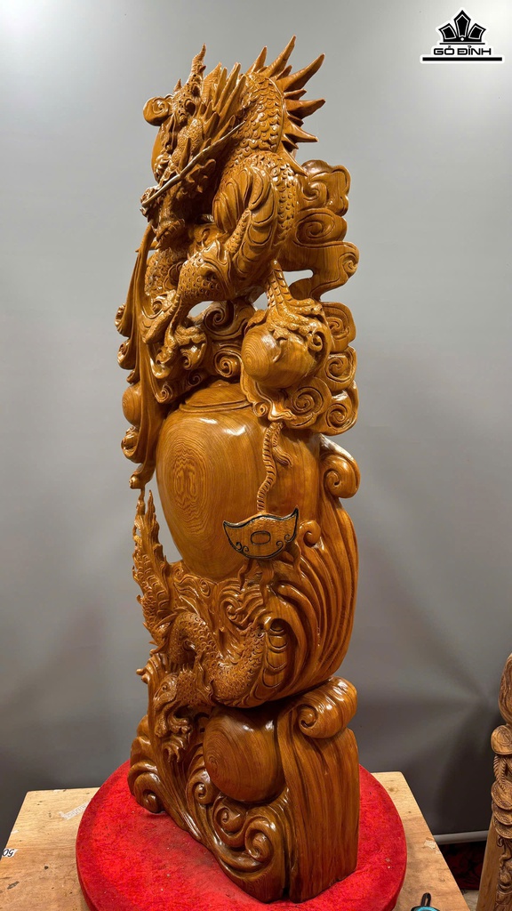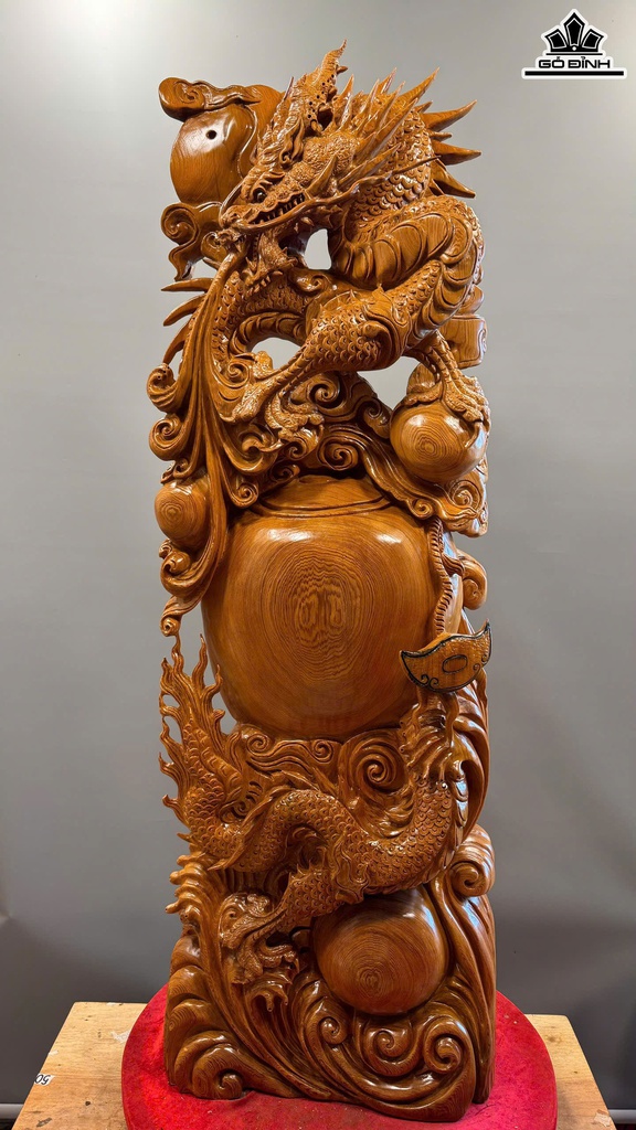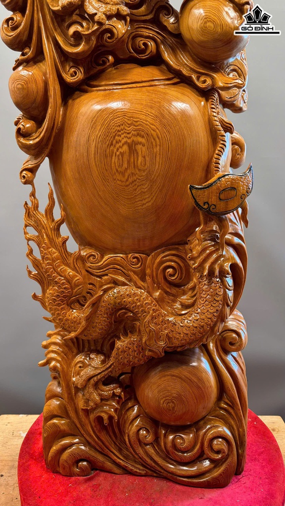 Tượng Nhất Long Trấn Chum Tiền Gỗ Ngọc Am Cao 126 Ngang 45 Sâu 20 (cm)