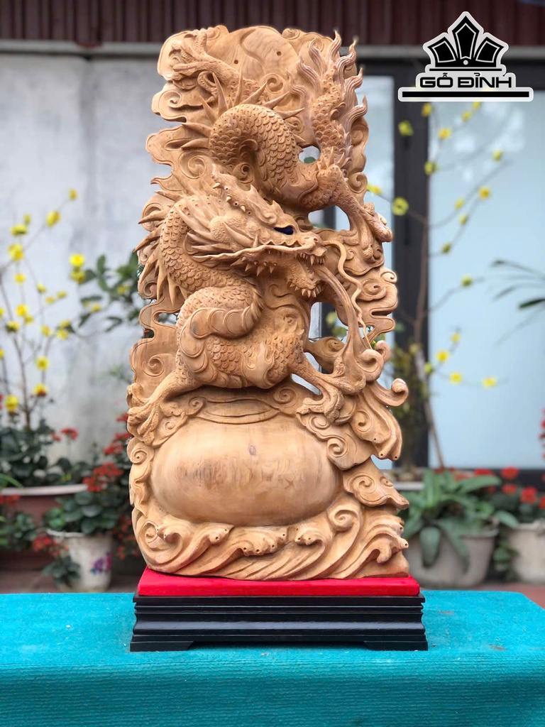 Tượng Nhất Long Trấn Chum Tiền Gỗ Ngọc Am Cao 83 Ngang 48 Sâu 19 (cm)