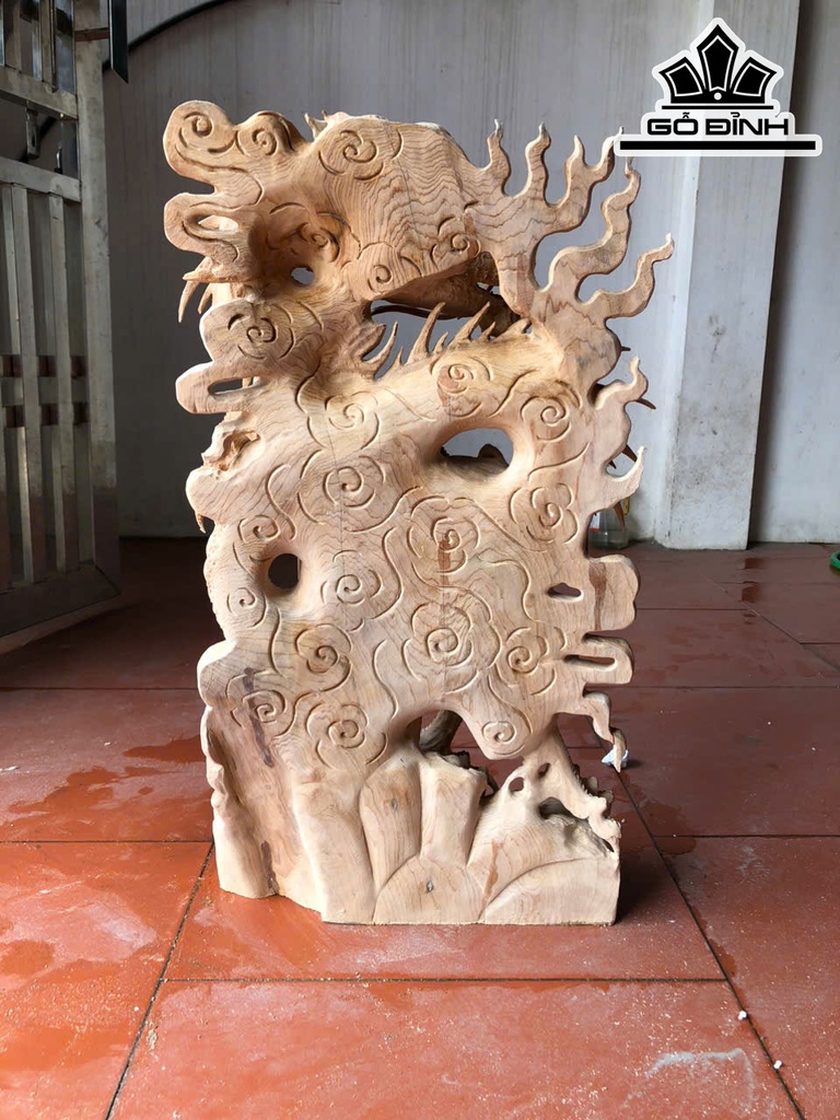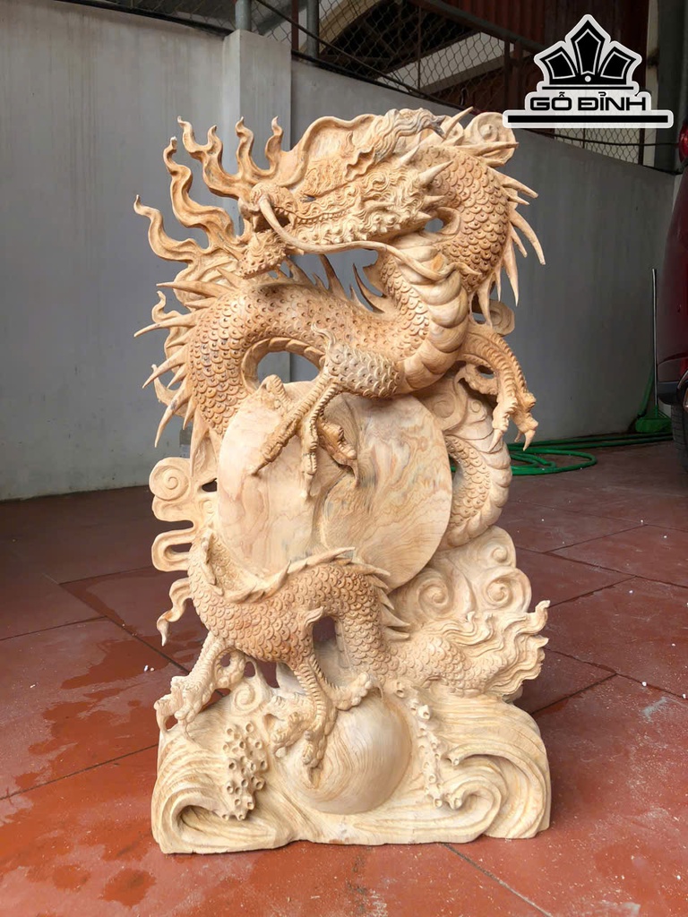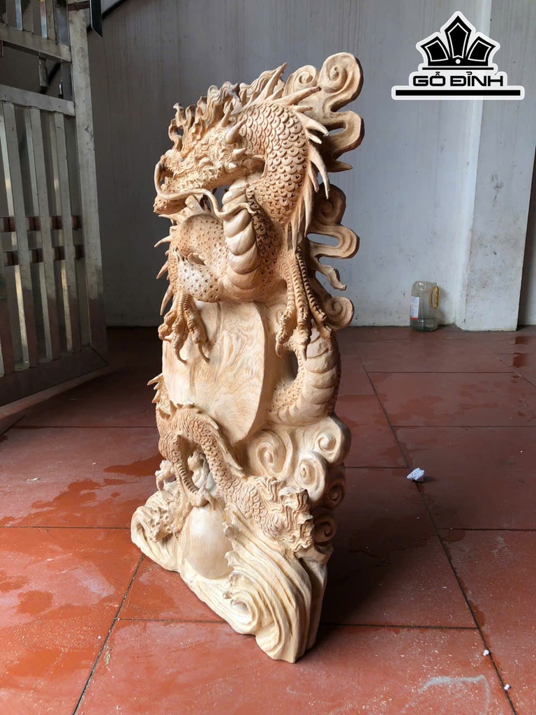 Tượng Nhất Long Trầu Nguyệt Gỗ Ngọc Am Cao 73 Ngang 40 Sâu 12 (cm)