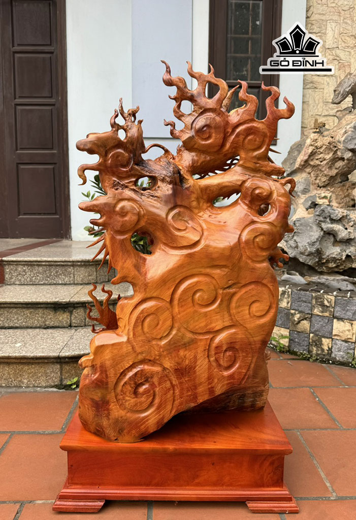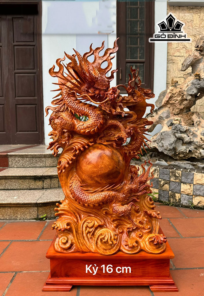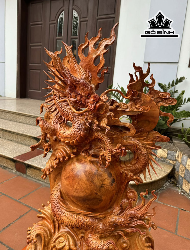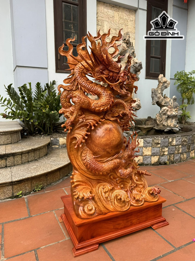 Tượng Nhất Long Vờn Ngọc Gỗ Hương Cao 113 Ngang 55 Sâu 30 (cm)