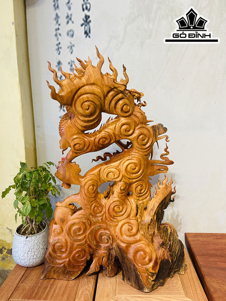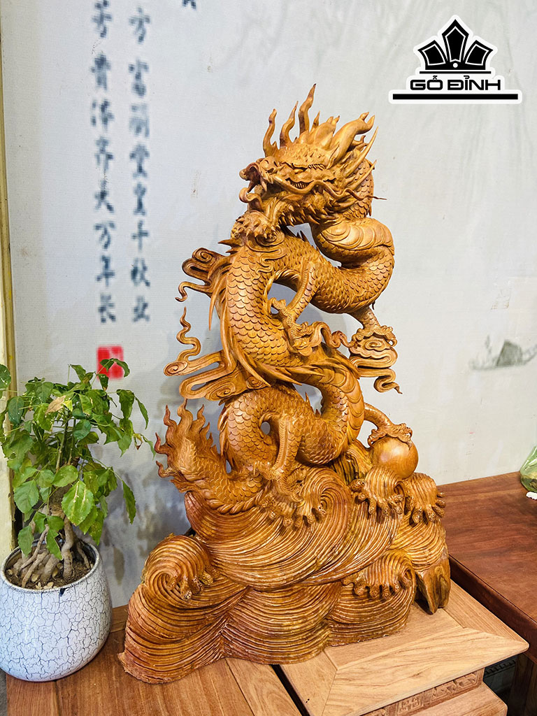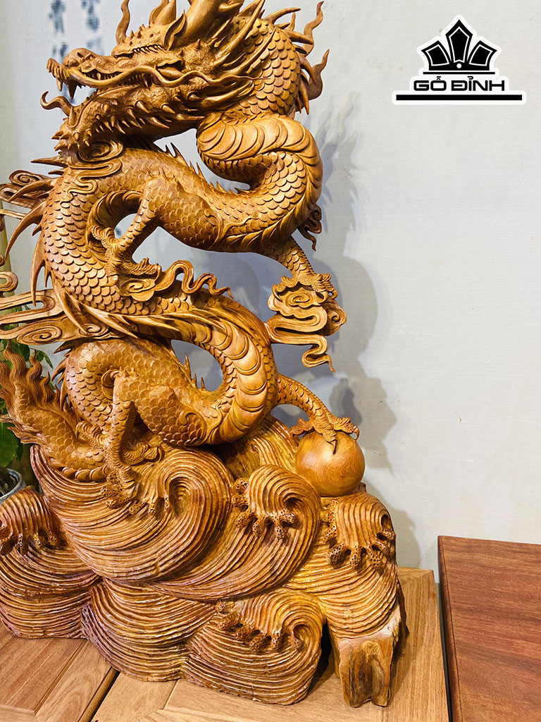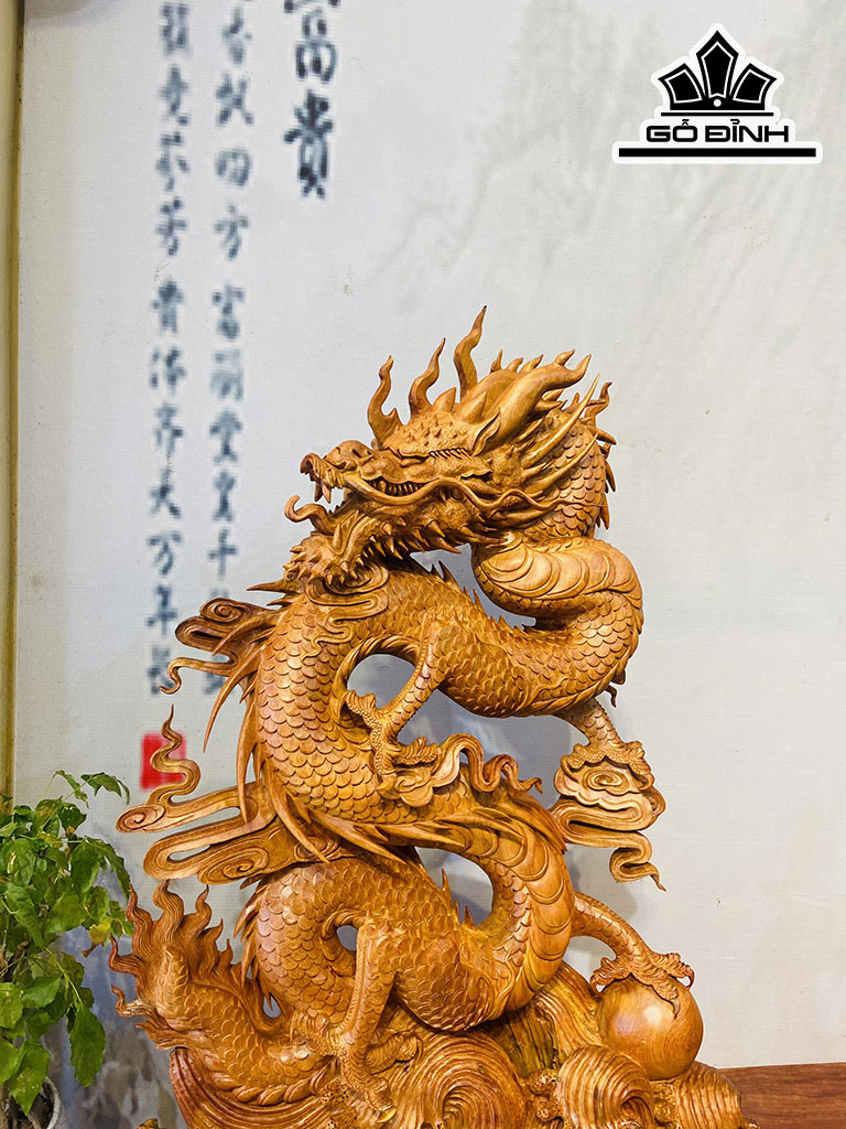 Tượng Nhất Long Vờn Ngọc Gỗ Hương Cao 83 Ngang 55 Sâu 20 (cm)