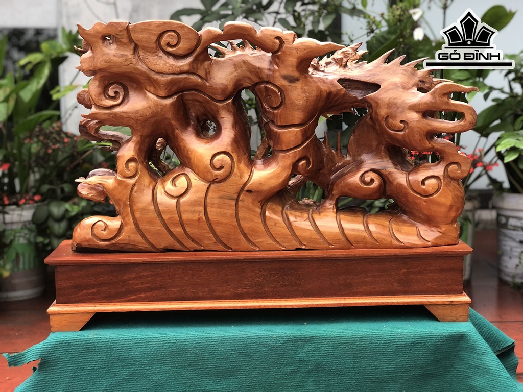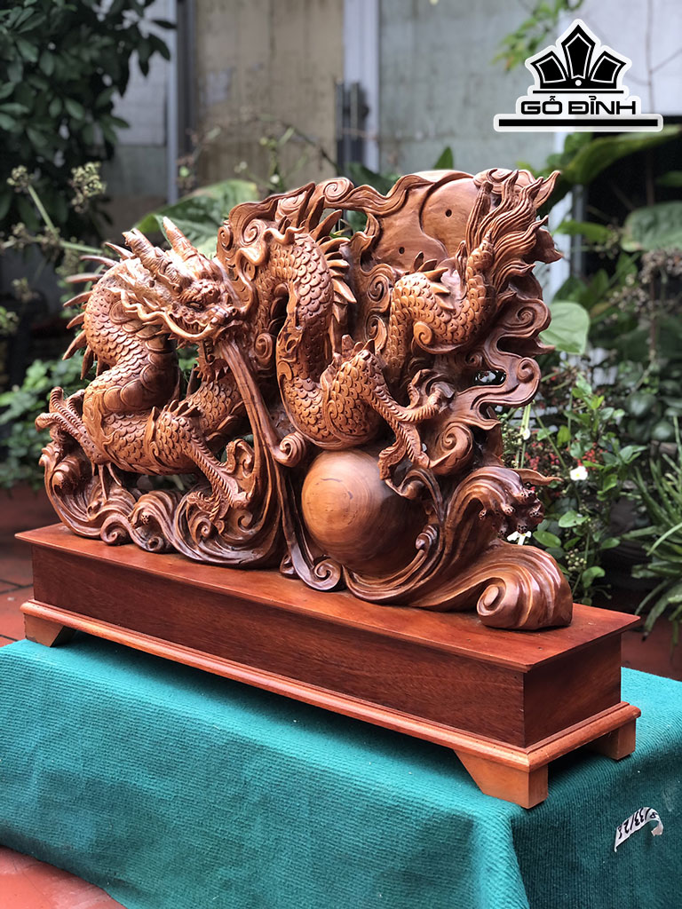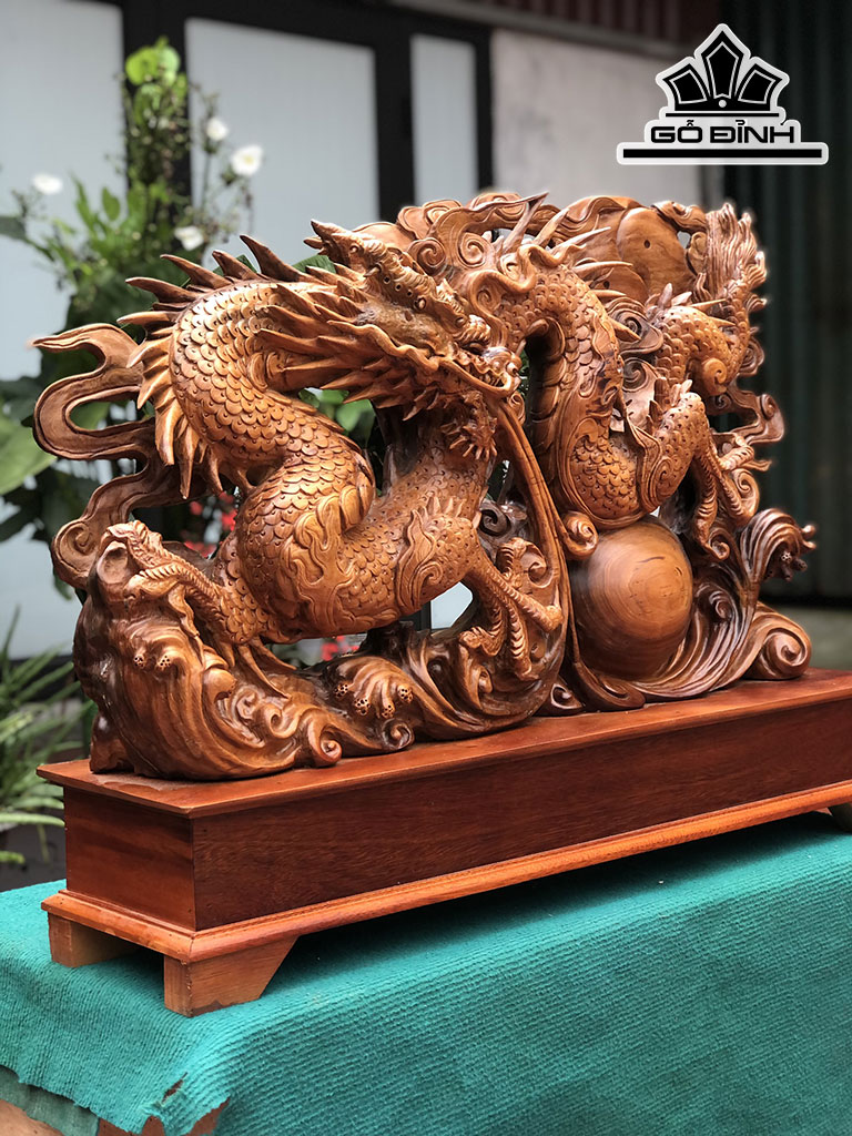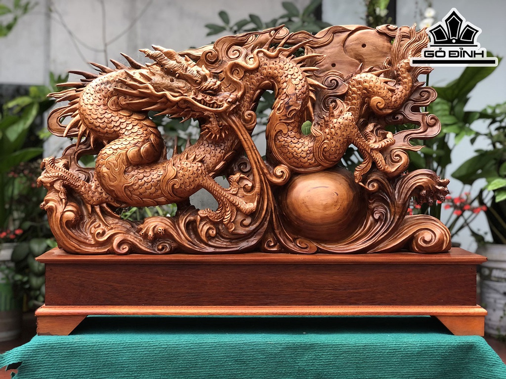 Tượng Nhất Long Vờn Ngọc Gỗ Ngọc Am Cao 62 Ngang 82 Sâu 17 (cm)