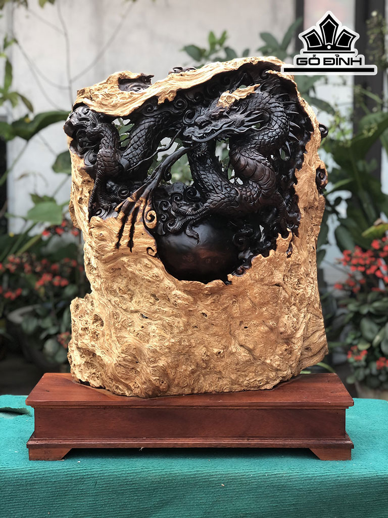Tượng Nhất Long Vờn Ngọc Gỗ Nu Nghiến Cao 69 Ngang 50 Sâu 21 (cm)