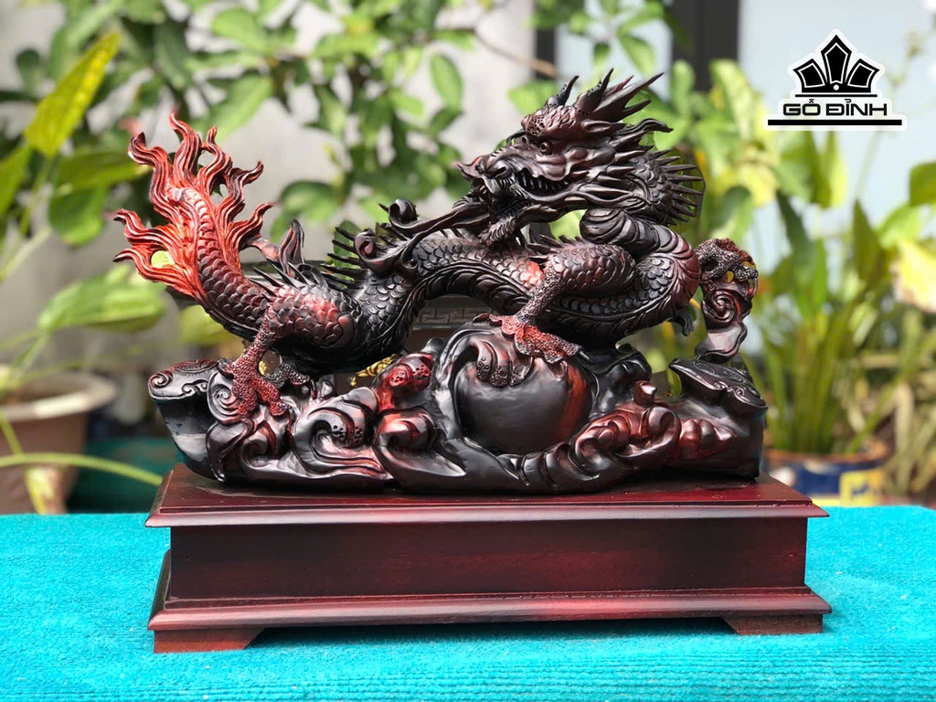 Tượng Nhất Long Vờn Ngọc Gỗ Trắc Cao Cả Kỷ 36 - Riêng Tượng 27 Rộng 45 Sâu 15 (cm)