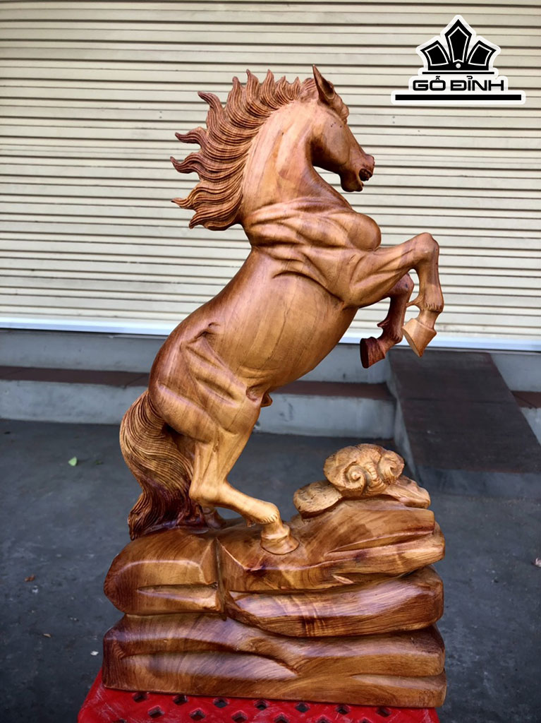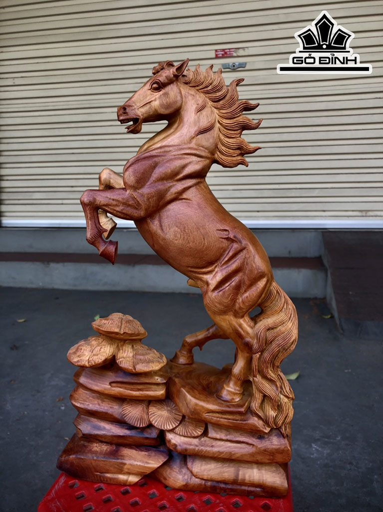 Tượng Nhất Mã Gỗ Hương Cao 41 Ngang 23 Sâu 10 (cm)