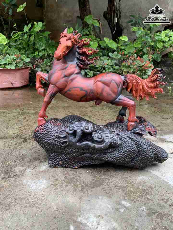 Tượng Nhất Mã Gỗ Trắc Đỏ Đen Cao 45 Ngang 45 Sâu 23 (cm)