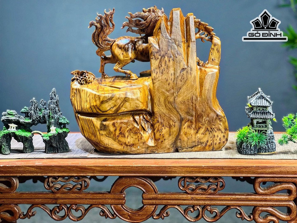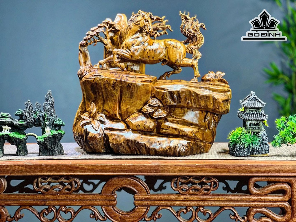 Tượng Nhất Mã Kim Tiền Gỗ Nu Ngọc Am Cao 37 Ngang 42 Sâu 22 (cm)