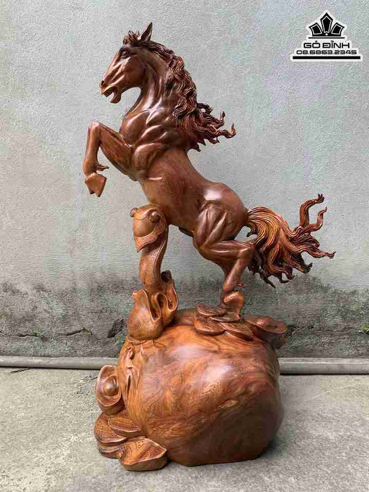 Tượng Nhất Mã Phi Thiên Gỗ Hương Cao 80 Ngang 50 Sâu 26 (cm)