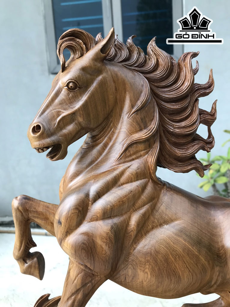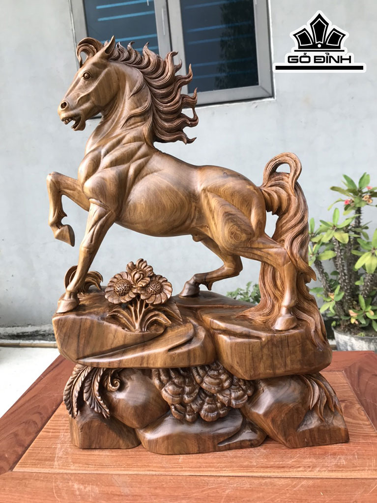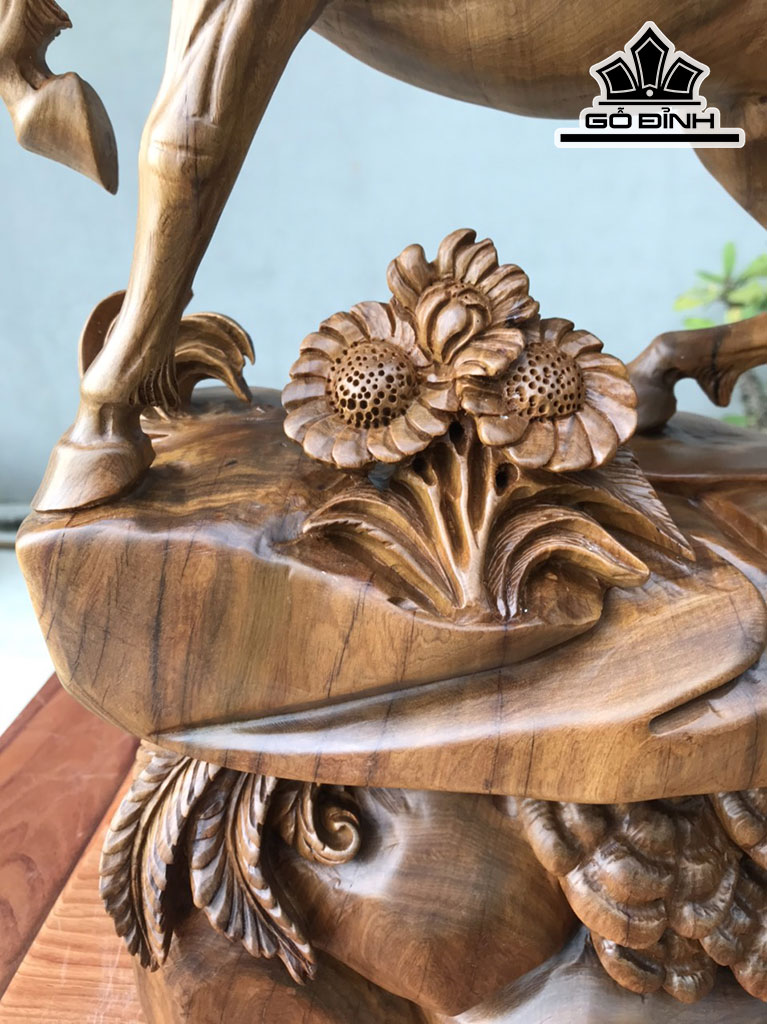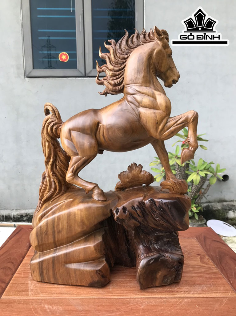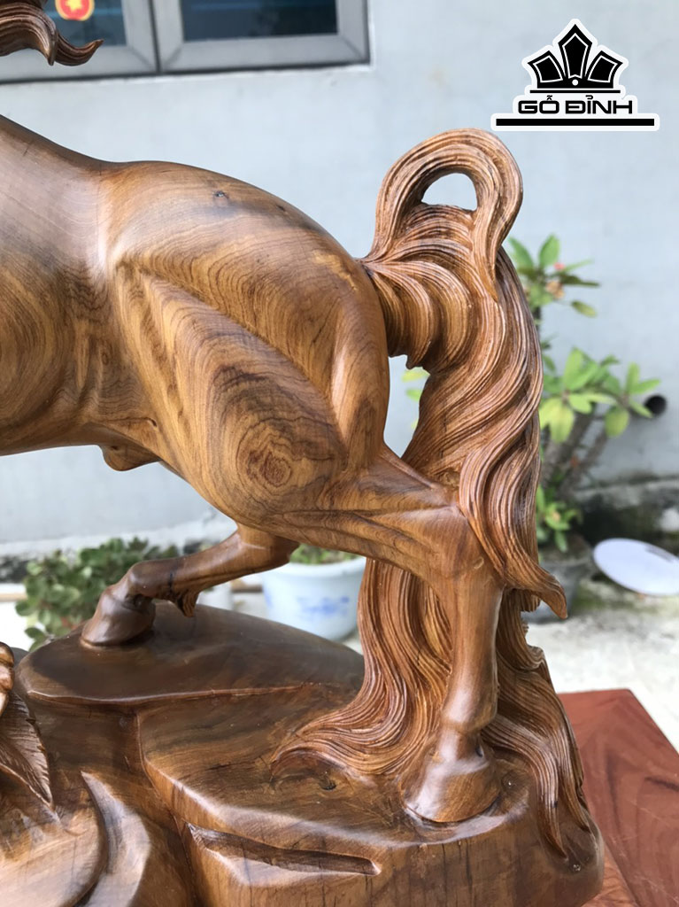 Tượng Nhất Mã Thong Dong Gỗ Bách Xanh Cao 51 Ngang 37 Sâu 16 (cm)