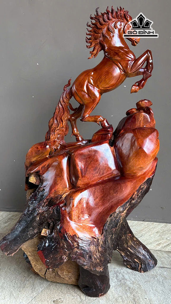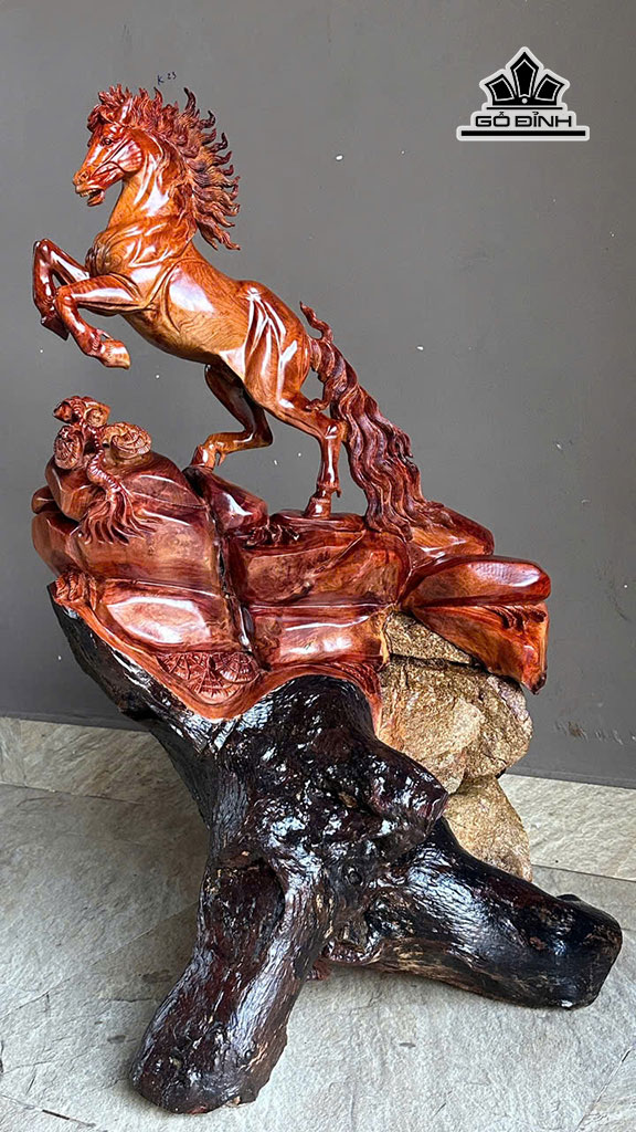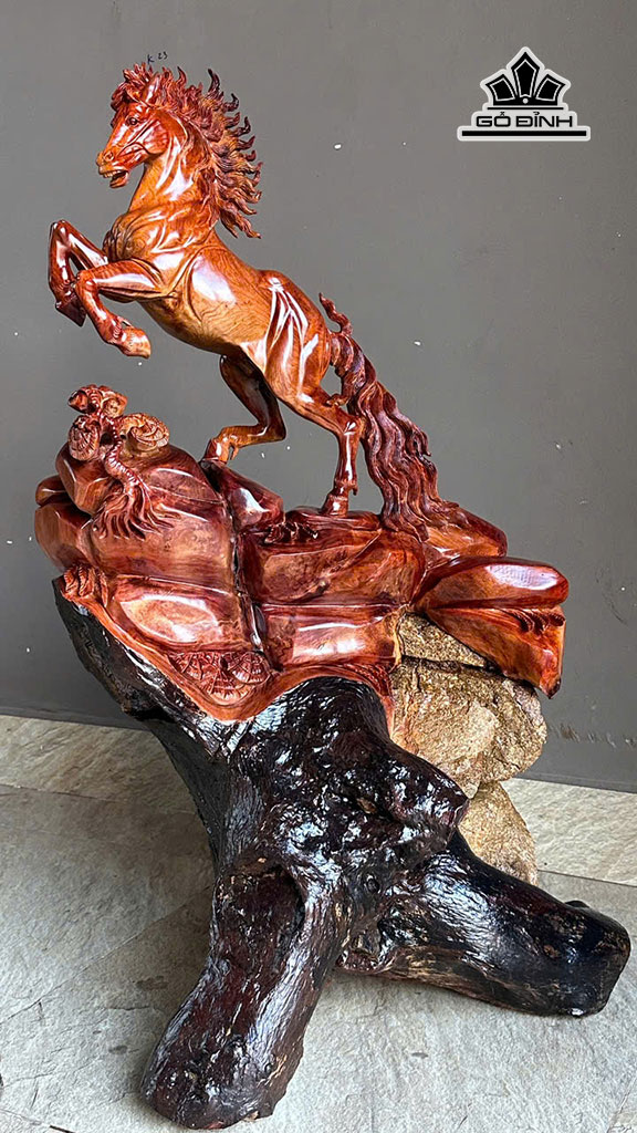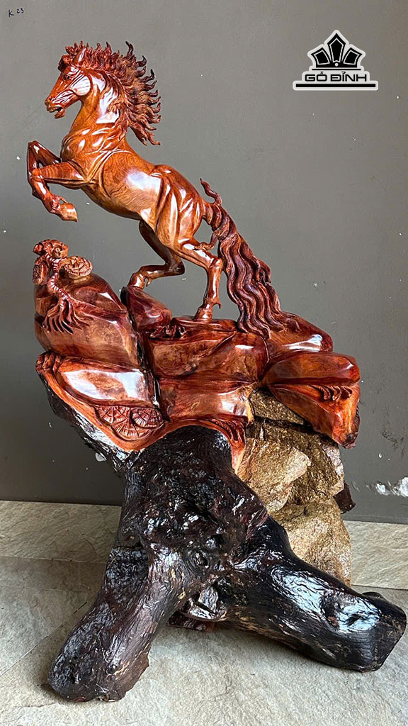 Tượng Nhất Mã Thong Dong Gỗ Hương Cao 95 Ngang 56 Sâu 40 (cm)