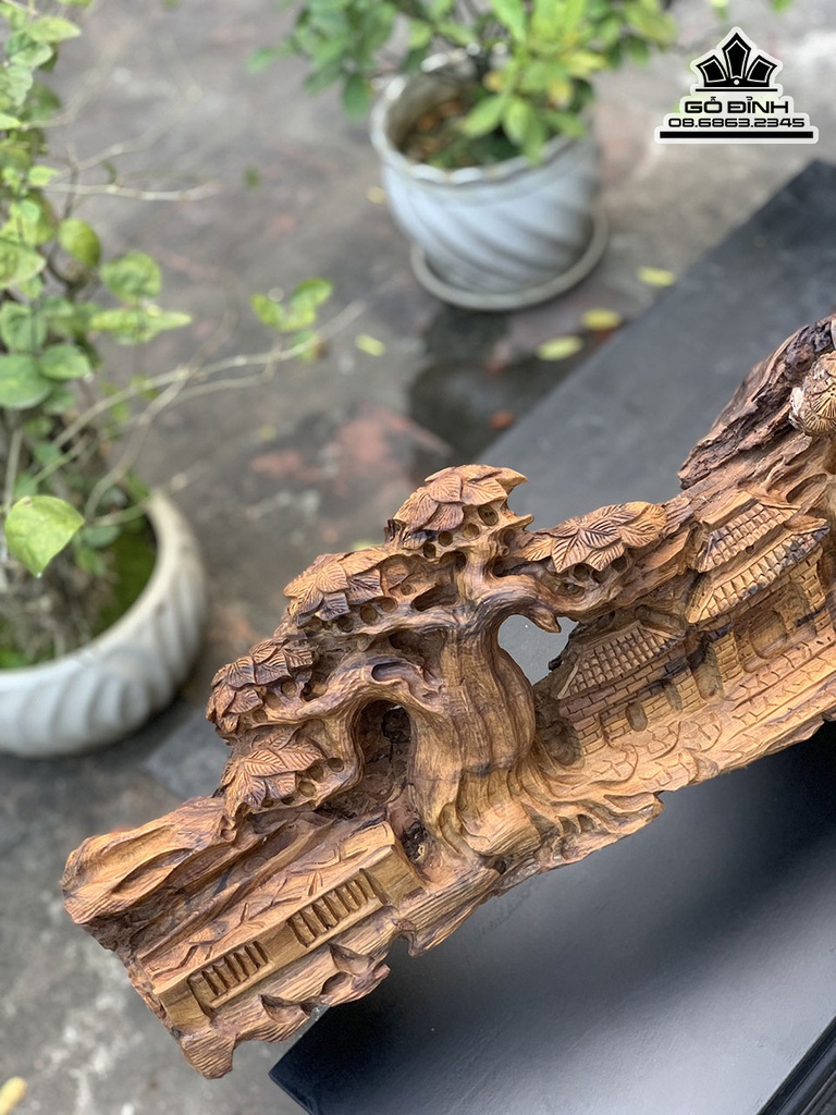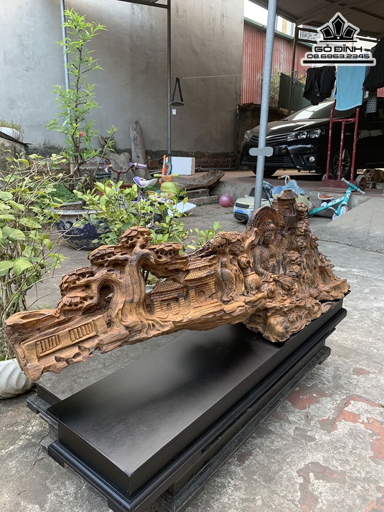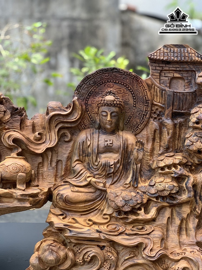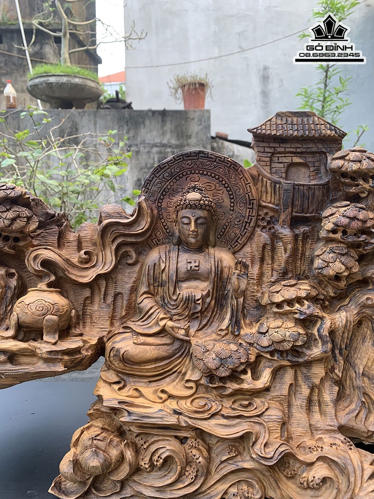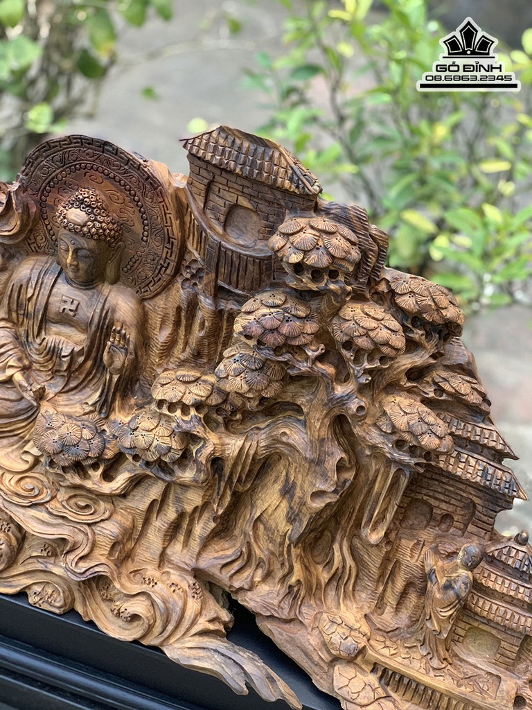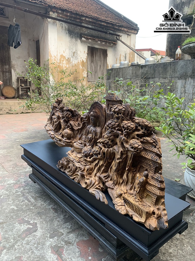 Tượng Nhất Tâm Bái Phật Gỗ Bách Xanh Cao 36 Ngang 108 Sâu 25 (cm)