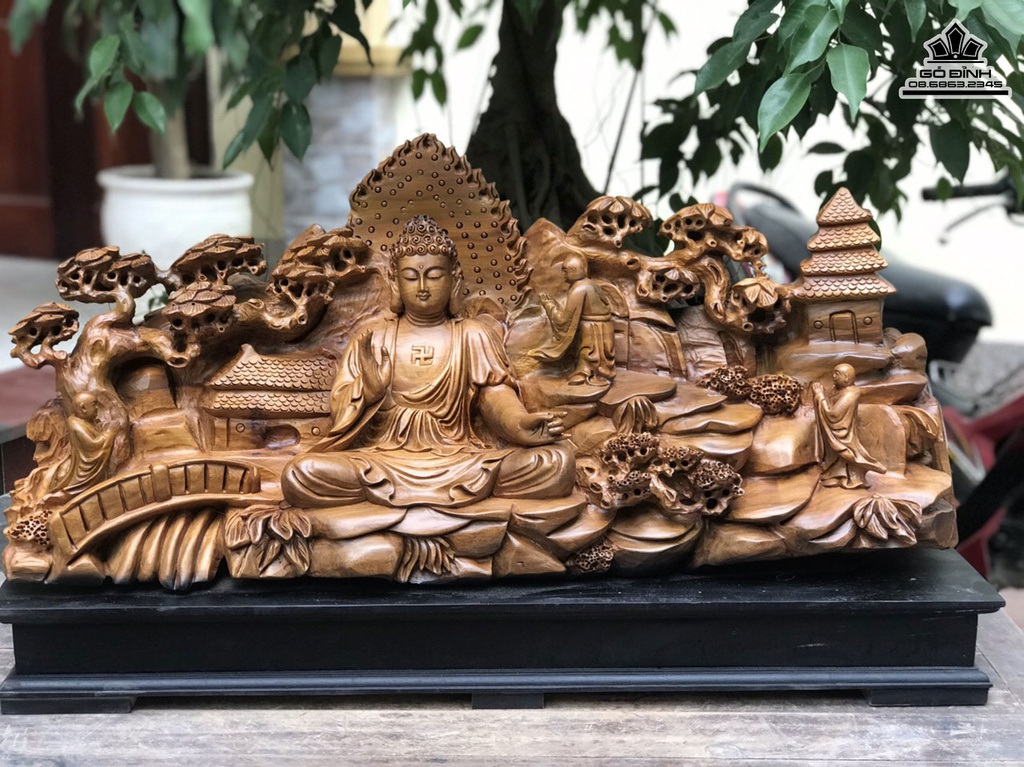 Tượng Nhất Tâm Bái Phật Gỗ Bách Xanh Cao 36 Ngang 82 Sâu 28 Cả Kỷ 46 (cm)